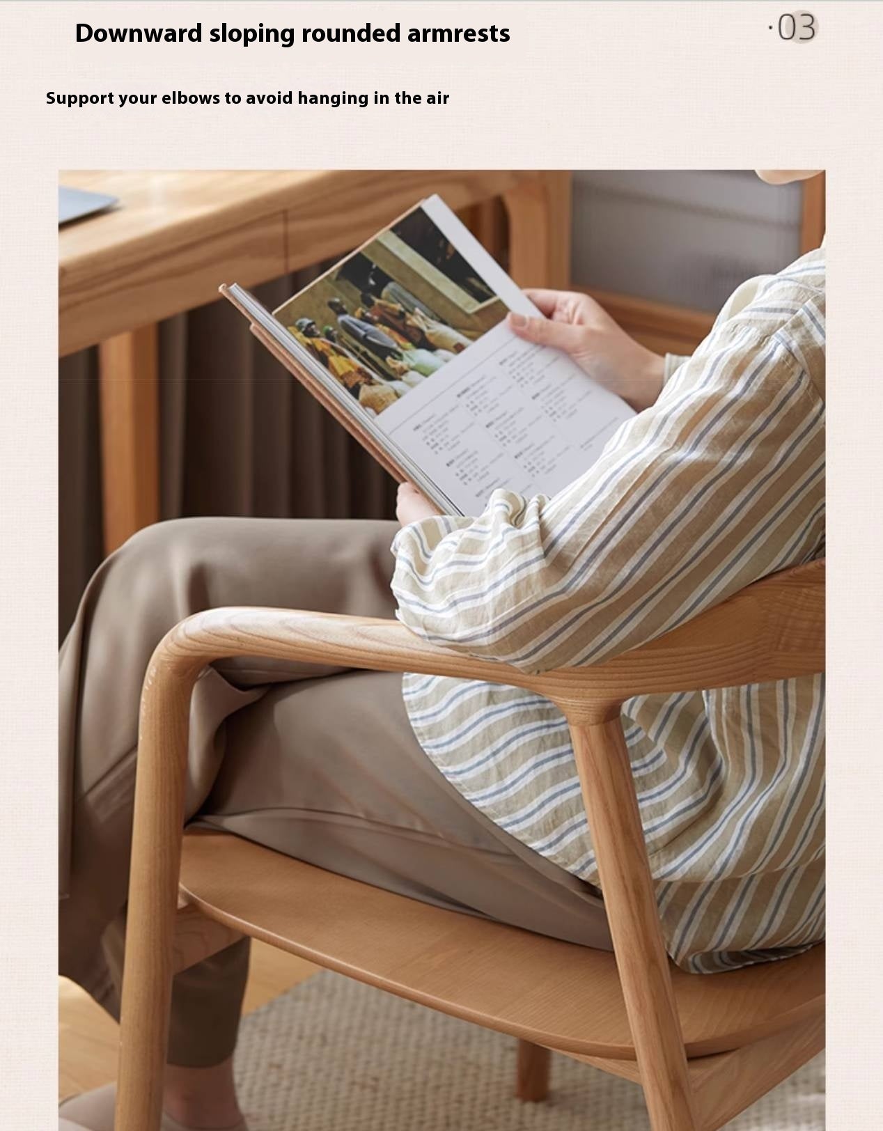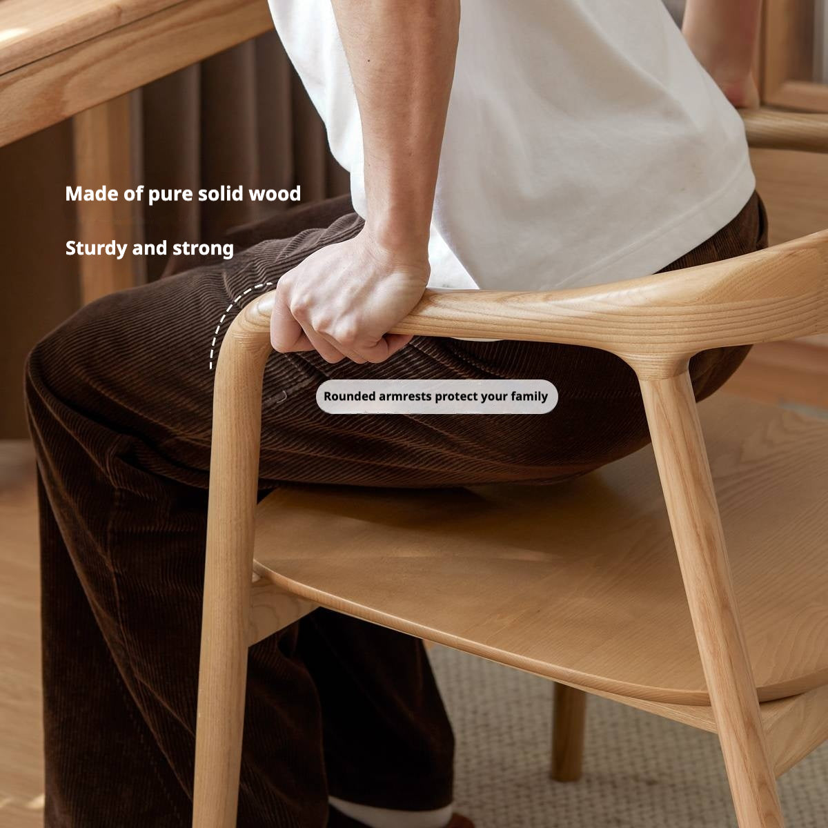 This Ash Solid Wood Armchair features a classic, elegant design with a curved backrest that offers comfortable support. Its wide solid wood seat provides a relaxing space to relieve body tension, combining style and comfort seamlessly.