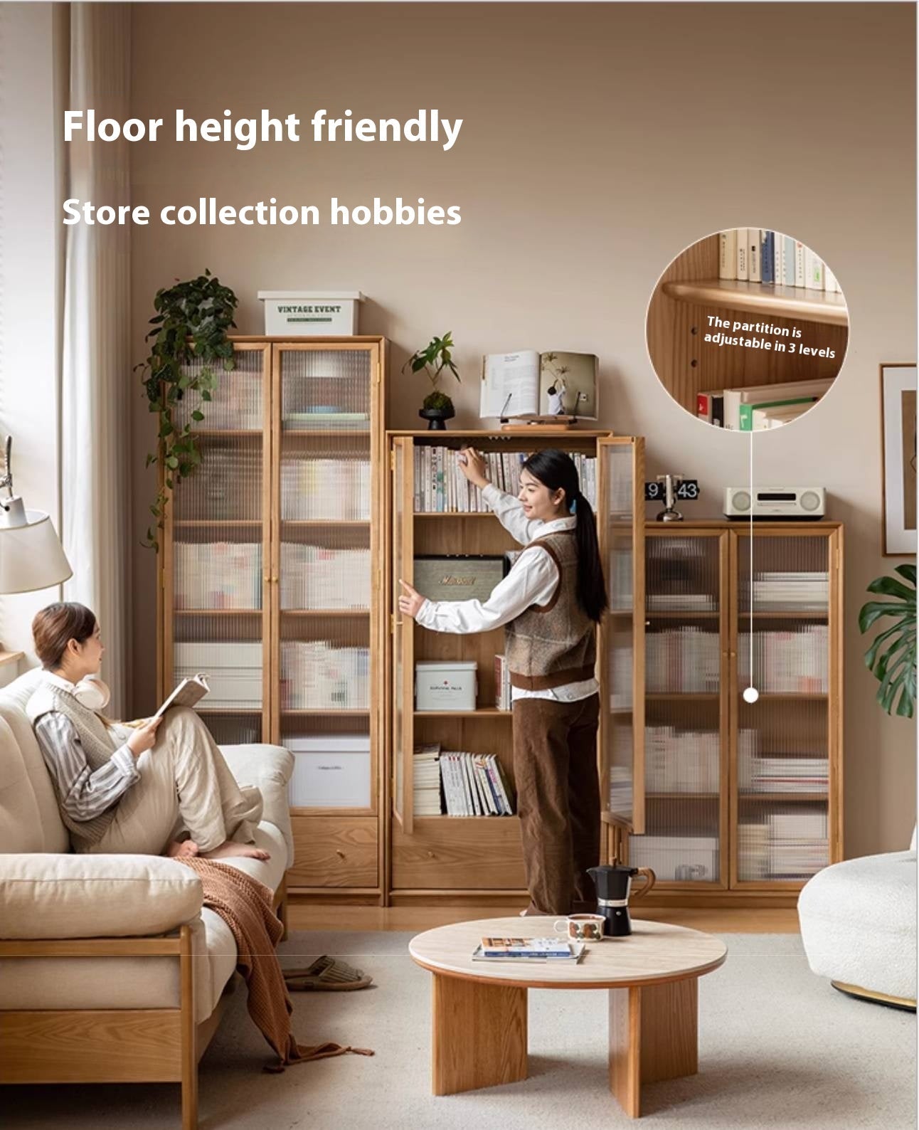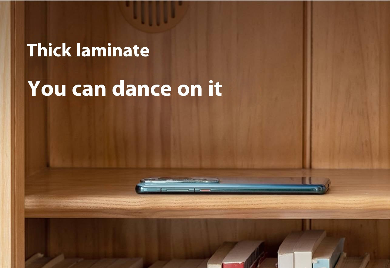 This cabinet is made from 100% solid North American ash wood, known for its strength and resistance to corrosion. Pine wood from New Zealand is used for drawers and back panels, providing stability and a light texture. It features smooth, damped steel ball-bearing drawer slides and 5mm thick ultra-clear Changhong glass.