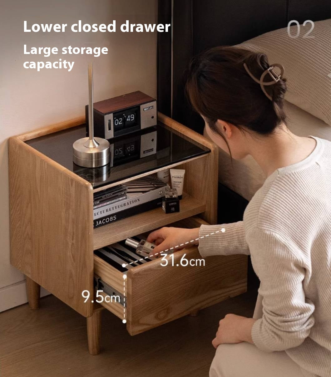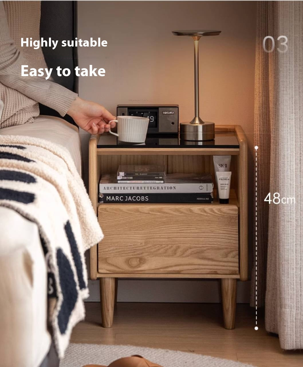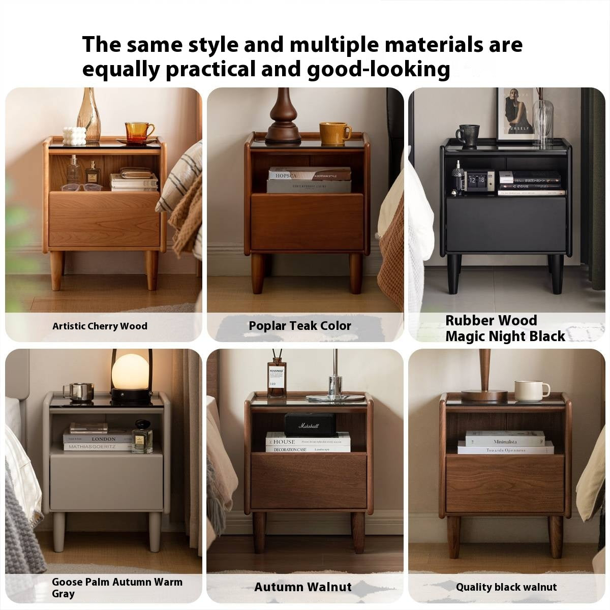 Ash, Cherry, Black walnut, Poplar, Solid Rubberwood Modern Nightstand.