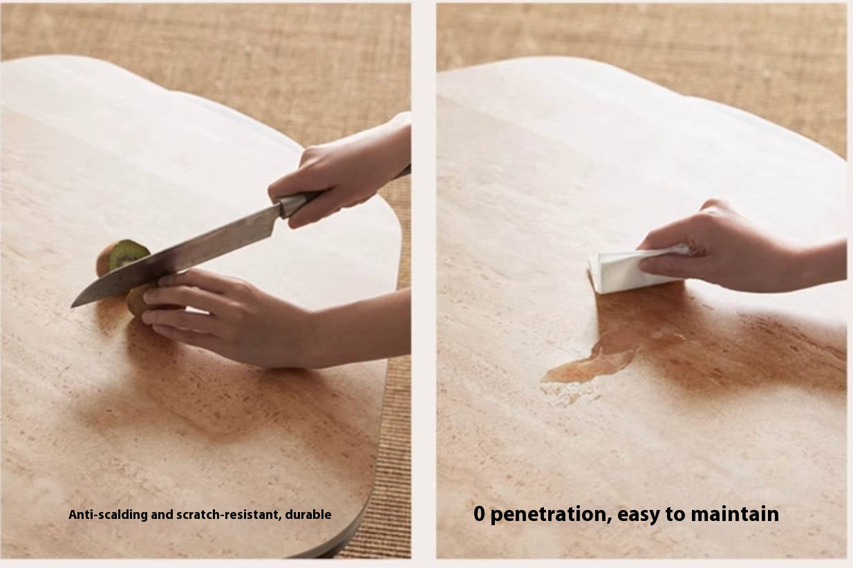 Explore the simple beauty of nature. High-value travertine rock slab. Retains the irregular texture of natural travertine and has distinct layers. Bring a tough and rustic natural atmosphere to the space.