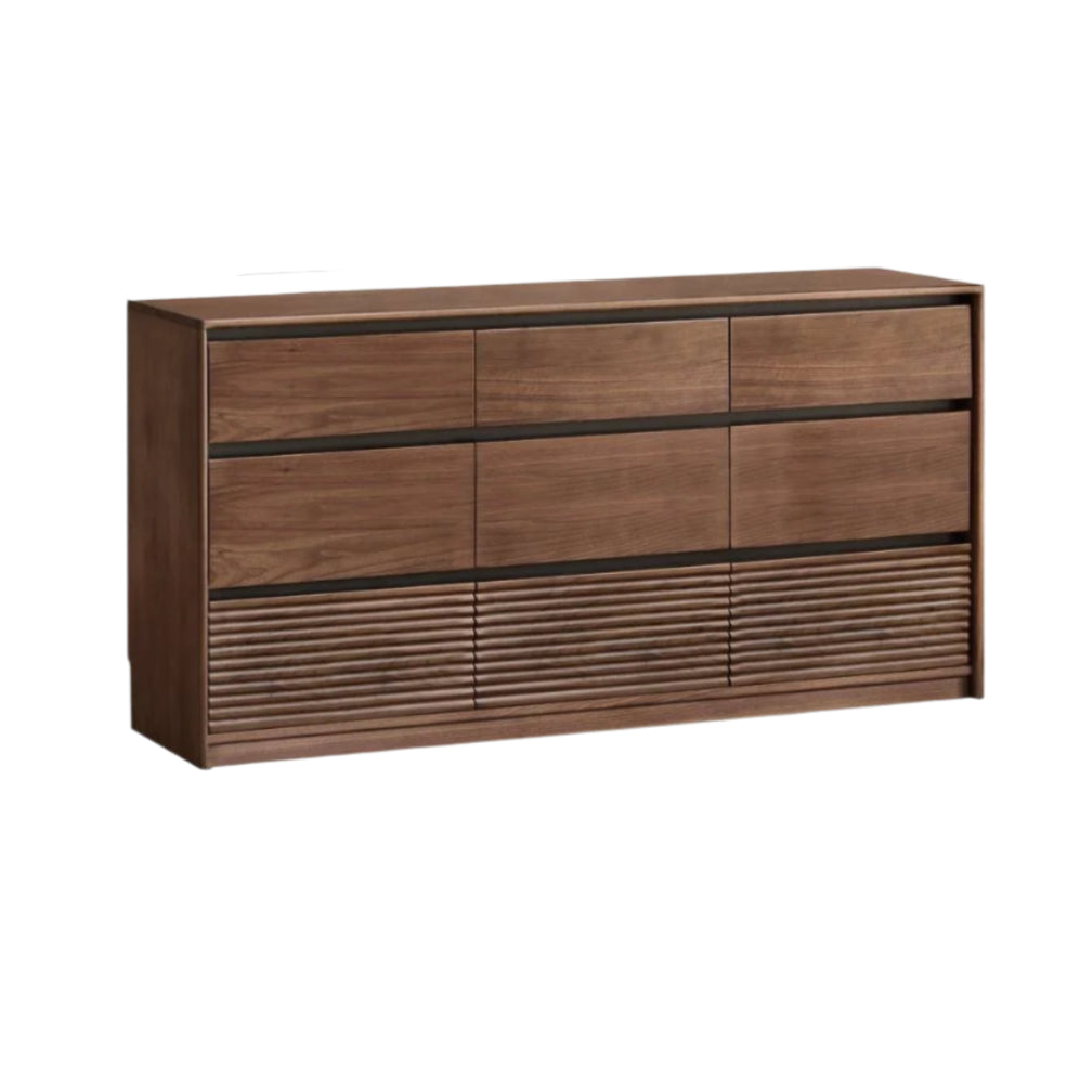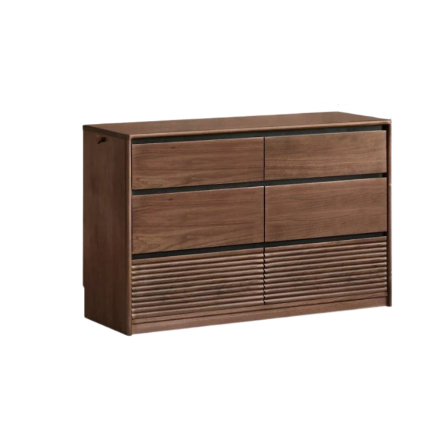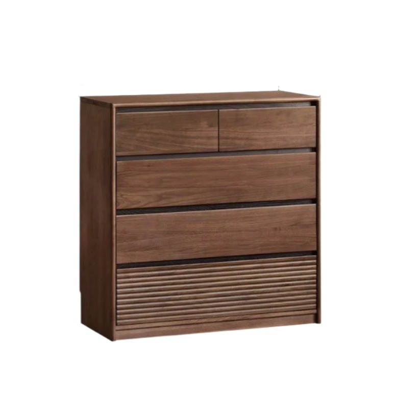 This drawer is crafted from 100% solid wood, excluding hardware and non-wood parts. The main material is premium North American black walnut, known for its rich patterns and durability. Supporting components use New Zealand pine for strength and stability, paulownia wood for resistance to wear and deformation, and North American oak for its attractive grain on the drawer fronts. Each wood is carefully selected to ensure quality and longevity.