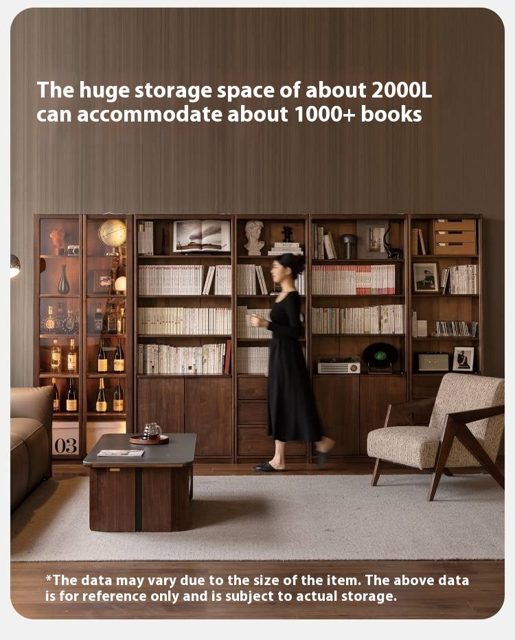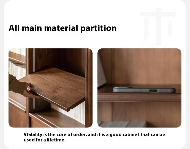 Black Walnut Solid Wood Light Luxury Bookcase and Storage