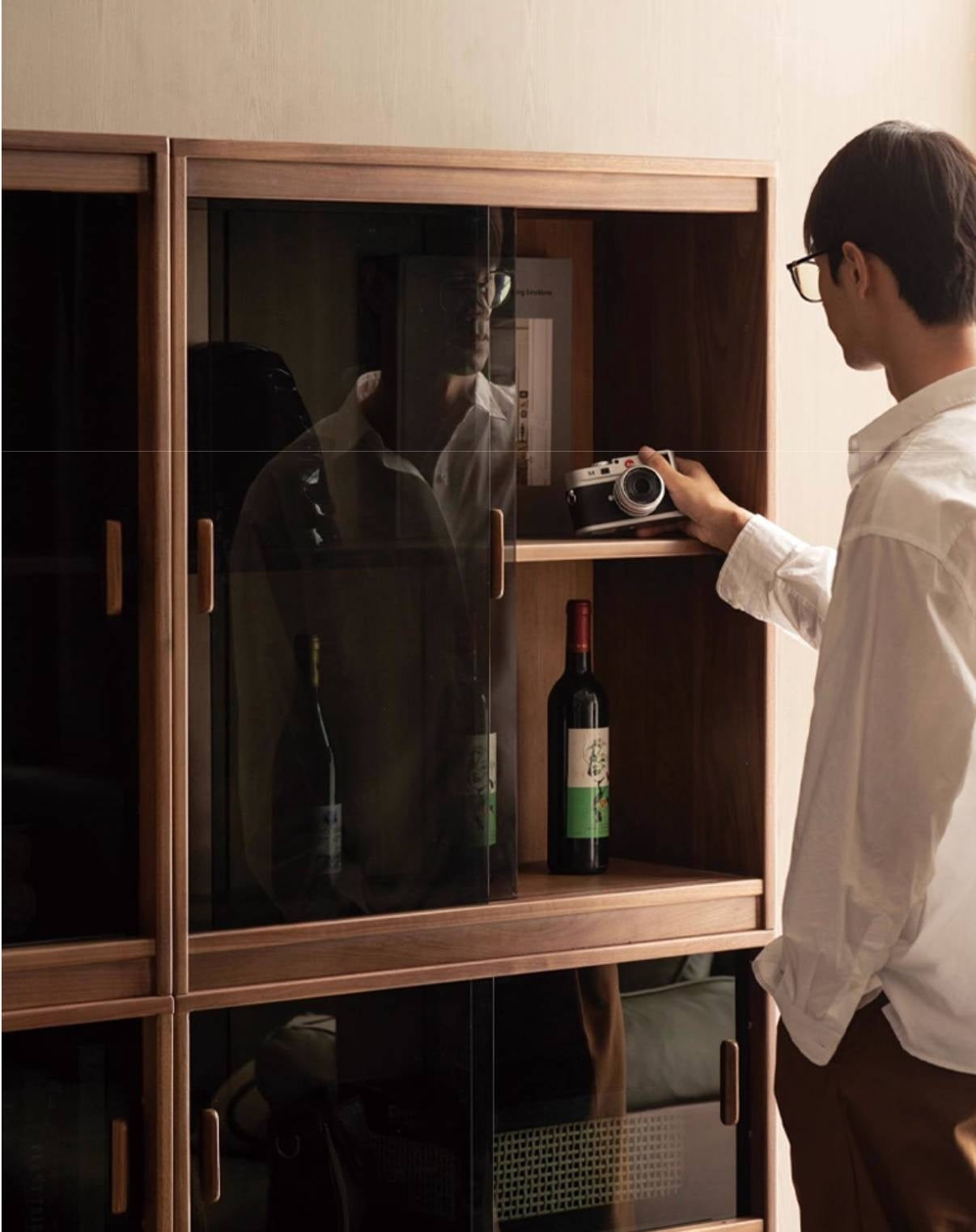 This Black Walnut solid wood bookcase combines vertical and horizontal lines to create a modular, organized space. Its design supports flexible arrangements, helping you keep your knowledge neatly displayed and easily accessible.