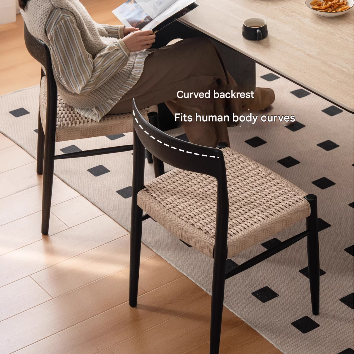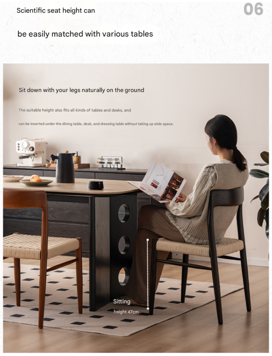Set 4 pcs Oak Solid Wood Dining Rope Chair