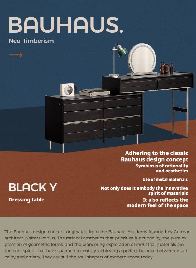 Ash Solid Wood Bauhaus Retractable Makeup Table