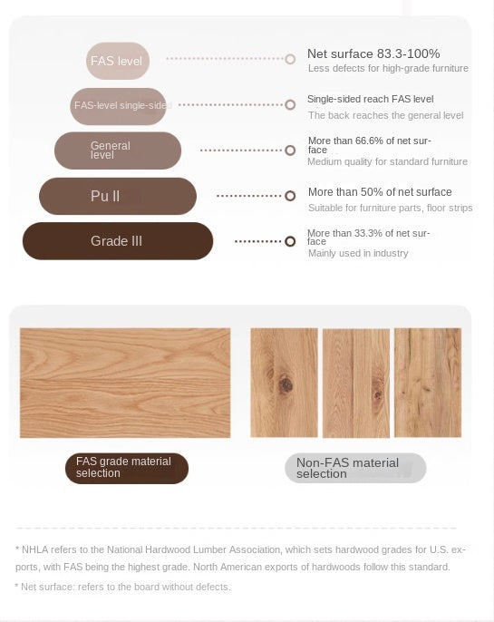 2. The main material is FAS-grade oak① imported from North America, with beautiful patterns, few scars and no mildew.