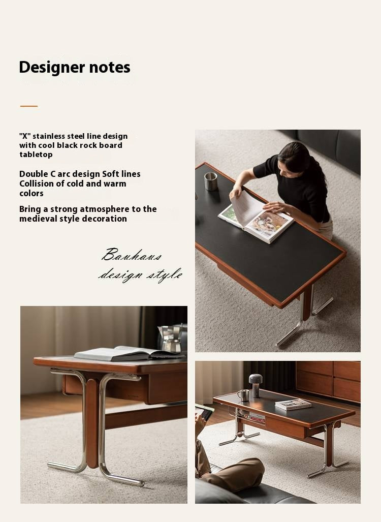 "X" type stainless steel line design. With cool black rock board desktop. Double C solitary design with soft lines. The collision of cold and warm colors. Bring a rich sense of atmosphere to the medieval style decoration.