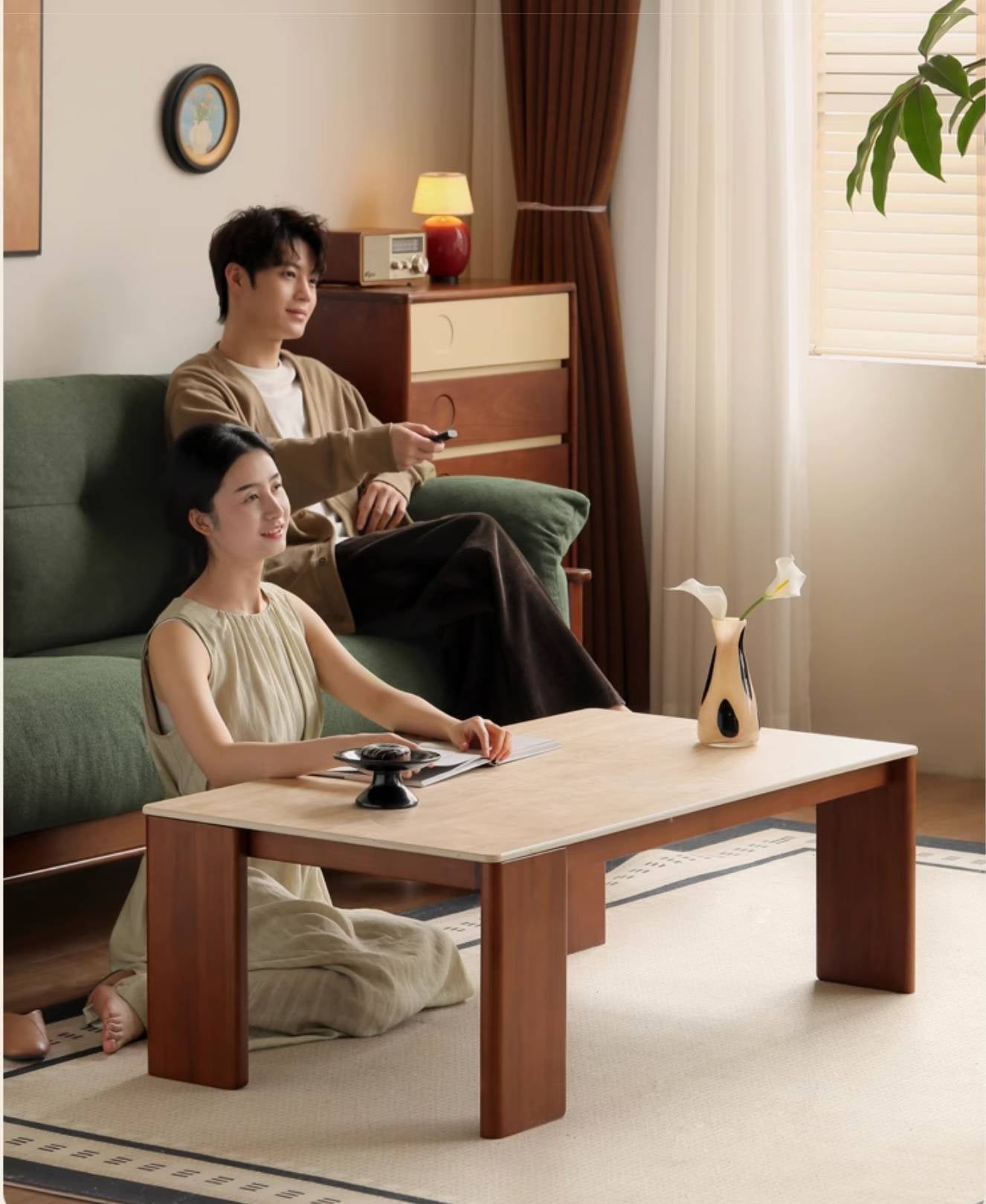 Wooden structure combined with rock slab makes it both stable and chic. Staggered large solid wood legs. Give space a sense of layering Let the coffee table present a unique geometric aesthetics. Simple but not simple. Easily blend into the middle-aged homeRetro wood wooden structure combined with rock slab. Makes it both stable and chic Staggered large solid wood legs. Give space a sense of layering Let the coffee table present a unique geometric aesthetics. Simple but not simple. Easily blend into the middle-aged home