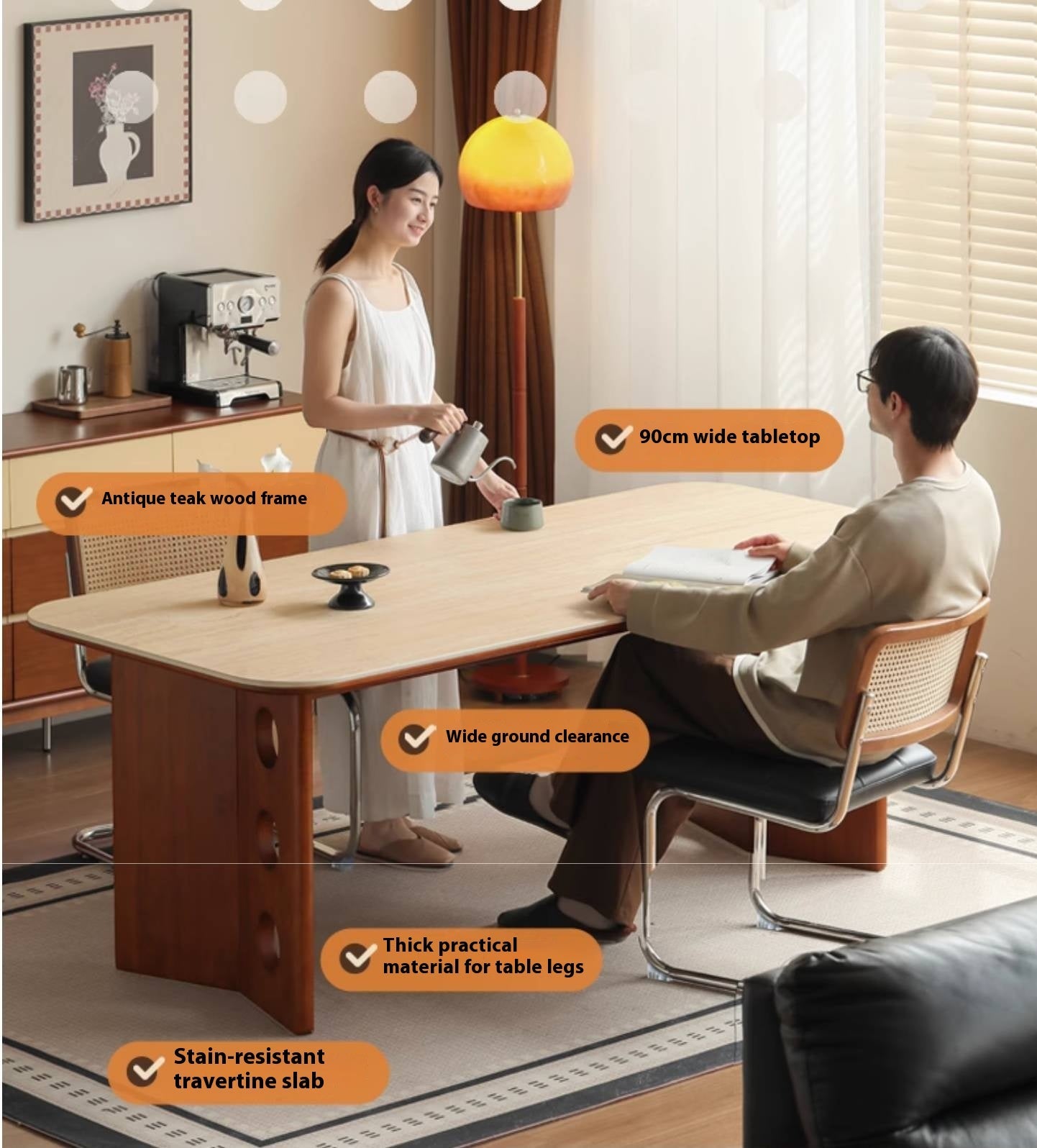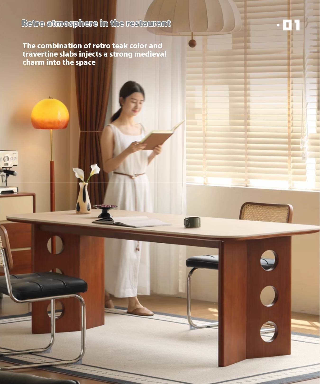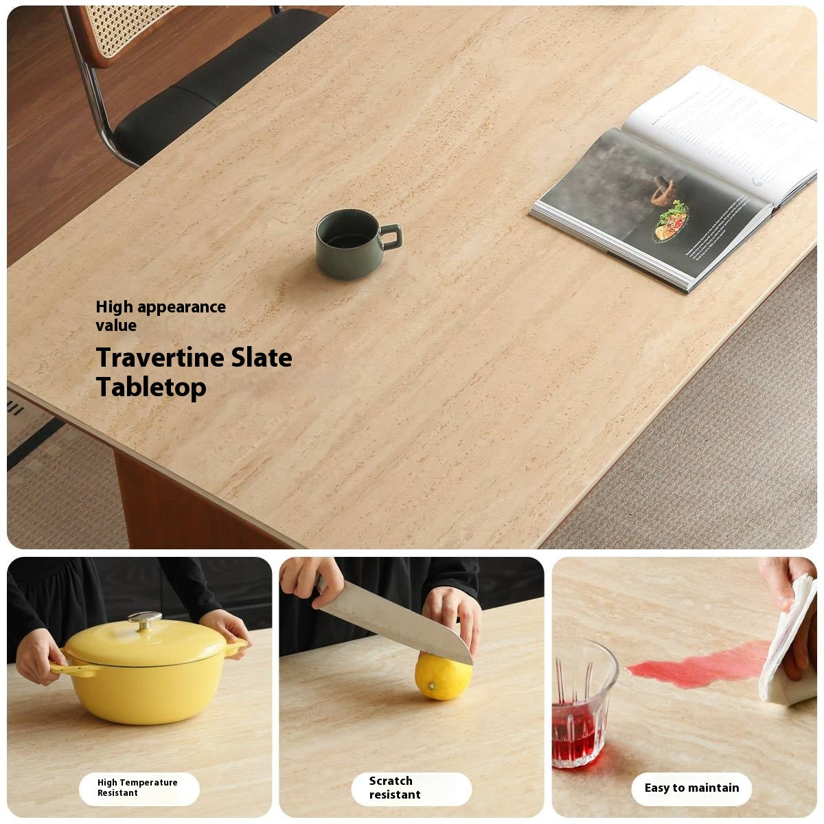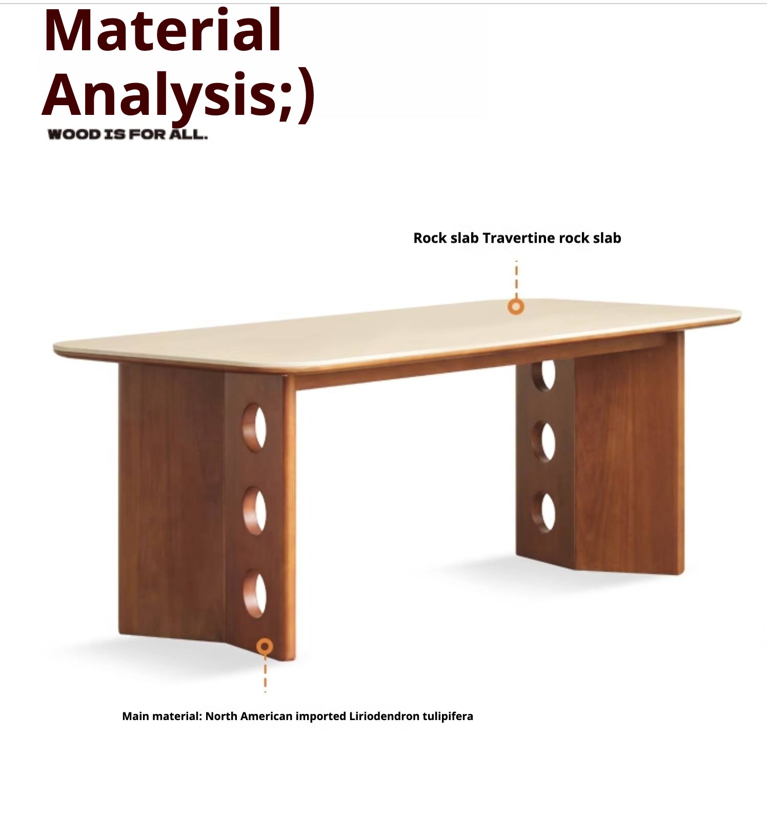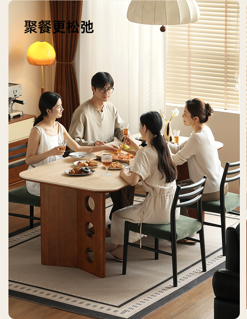 Poplar Solid Wood Medieval Style Rock Plate Dining Table