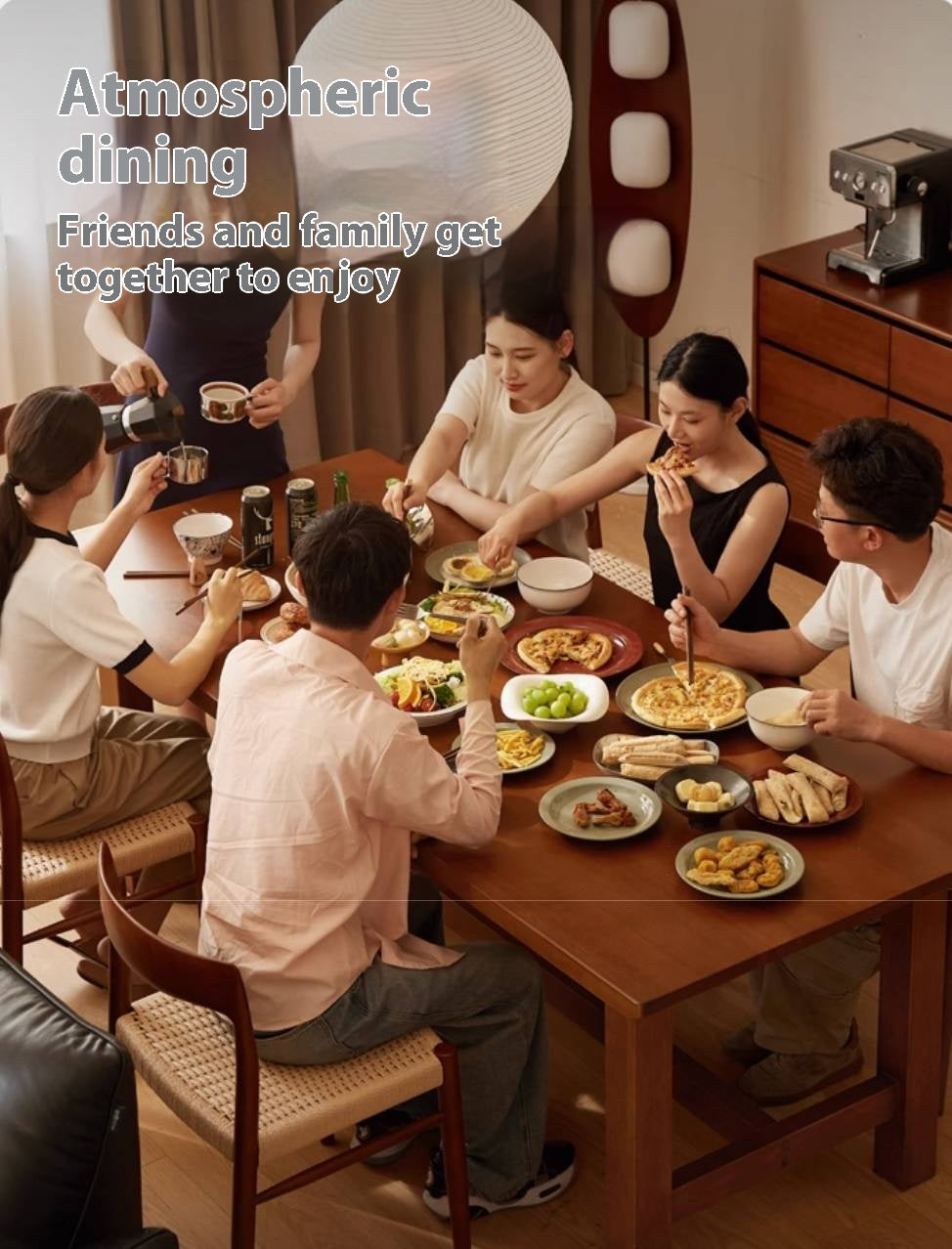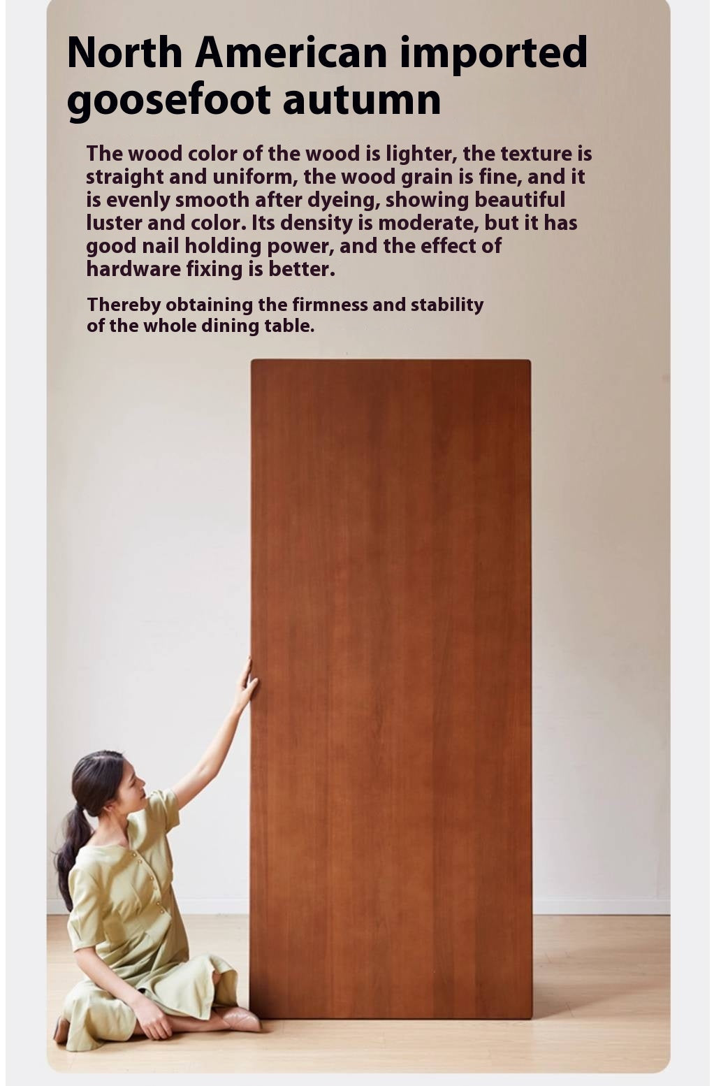 This dining table is crafted from 100% solid poplar wood imported from North America. It features a clear, straight grain with fine texture, offering durability, toughness, and resistance to mold and impact.
