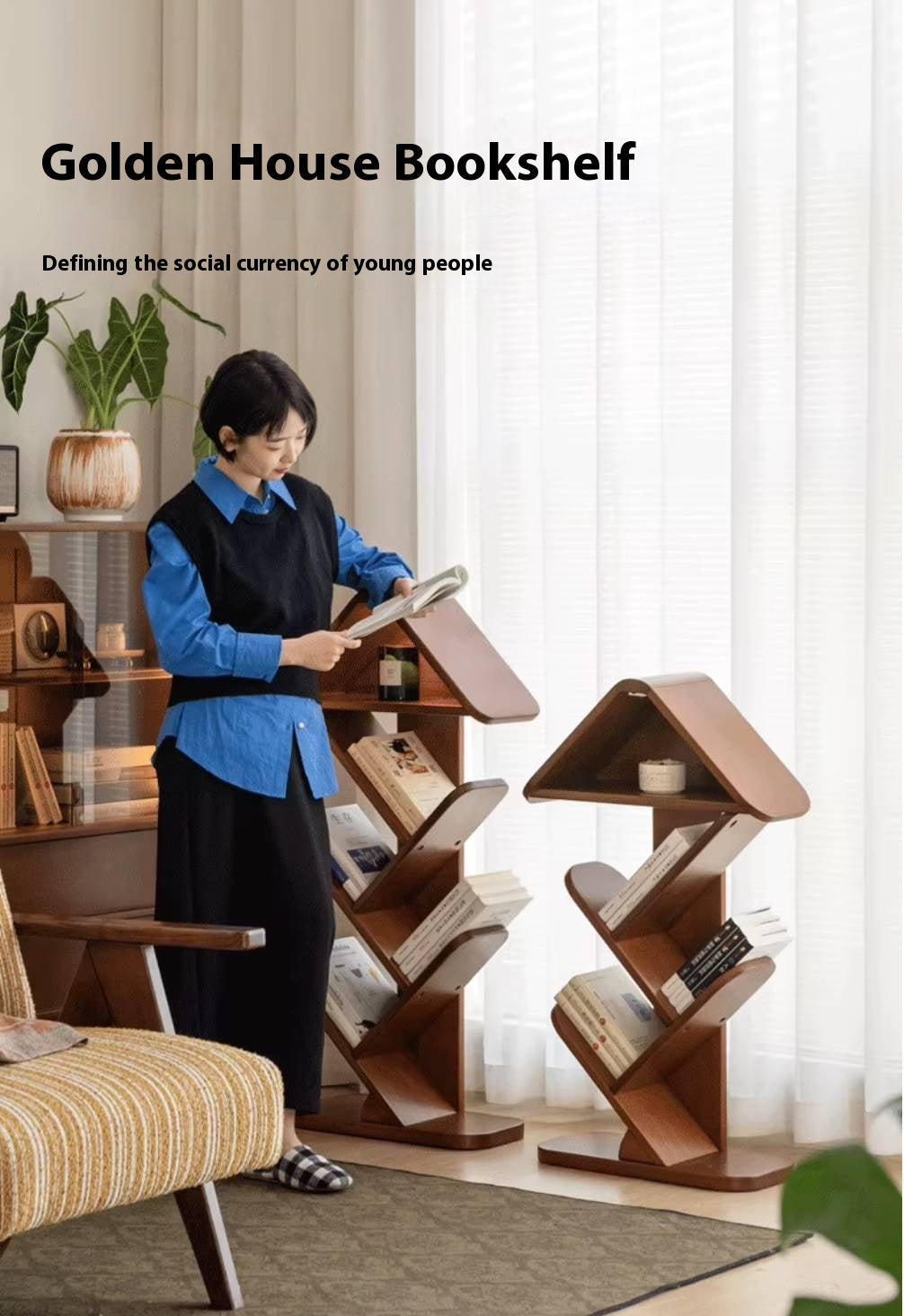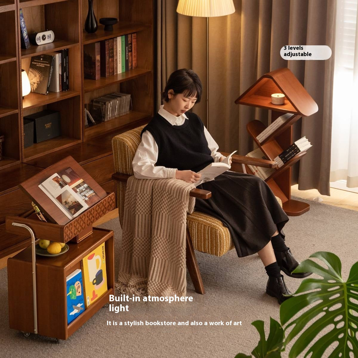 Poplar Solid Wood Mid Century Style Bookshelf And Newspaper Rack
