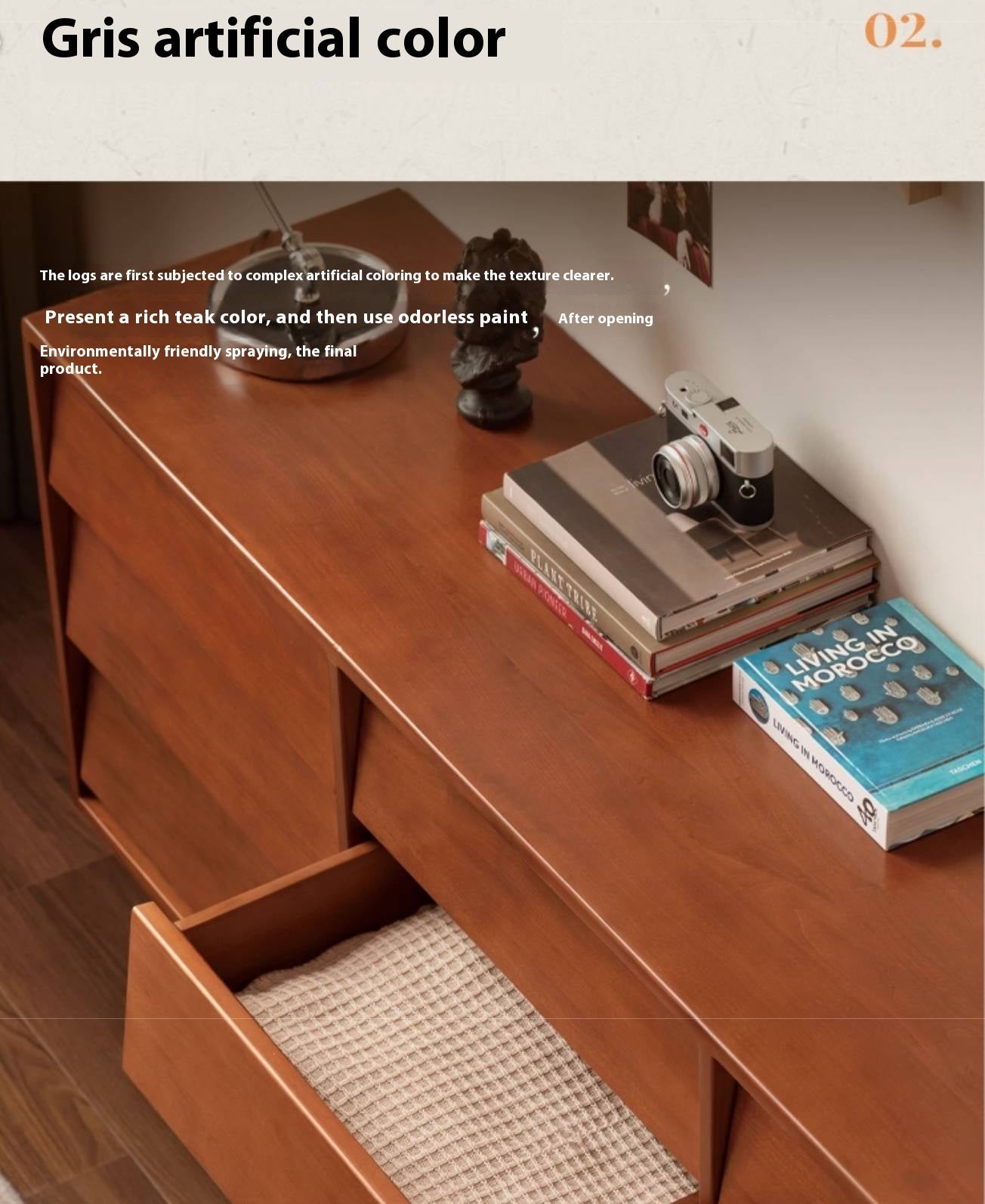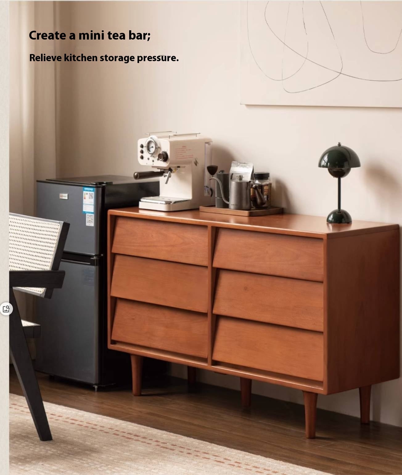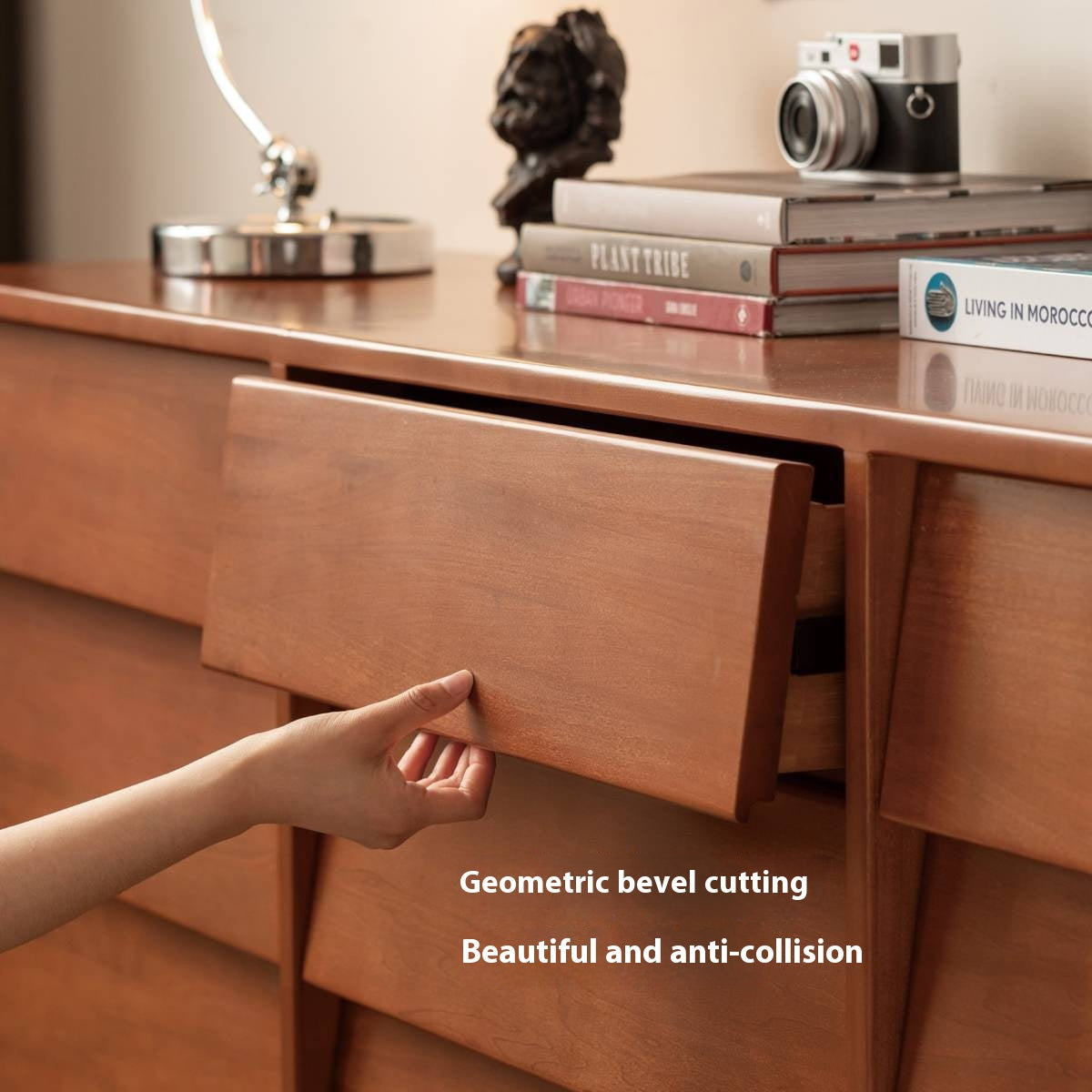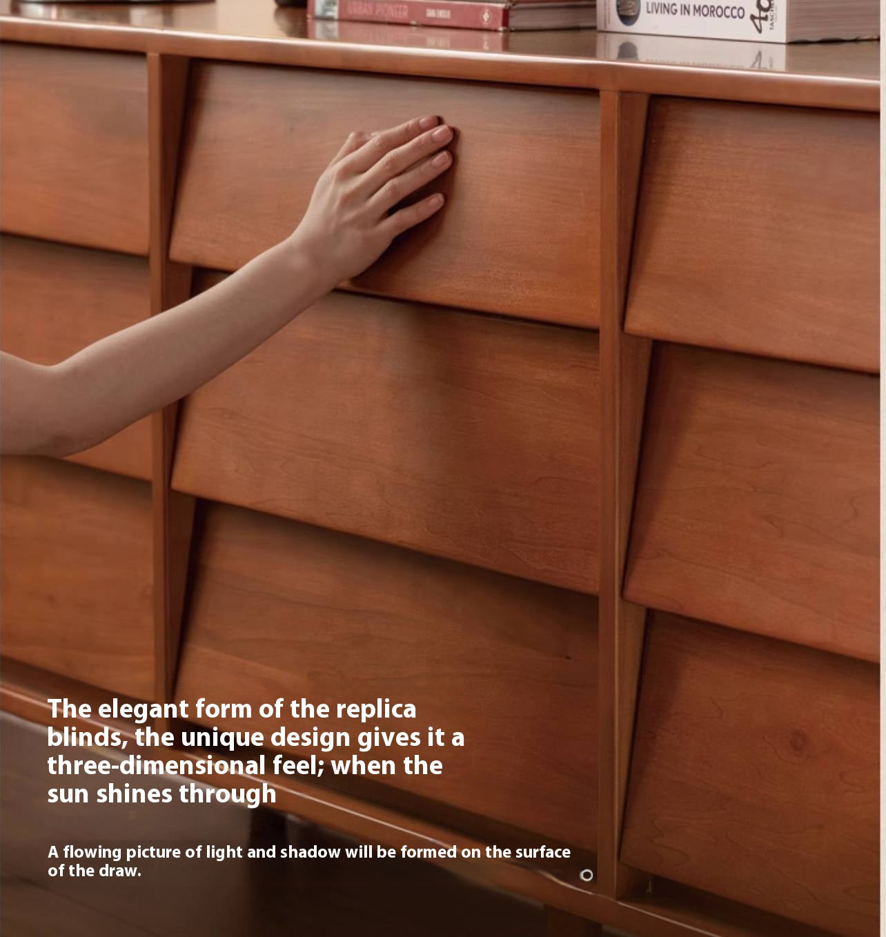 This poplar solid wood drawer features a classic design with a louvered surface that subtly captures light and shadow. It combines practical storage with timeless style, adding both function and artistic charm to your space.