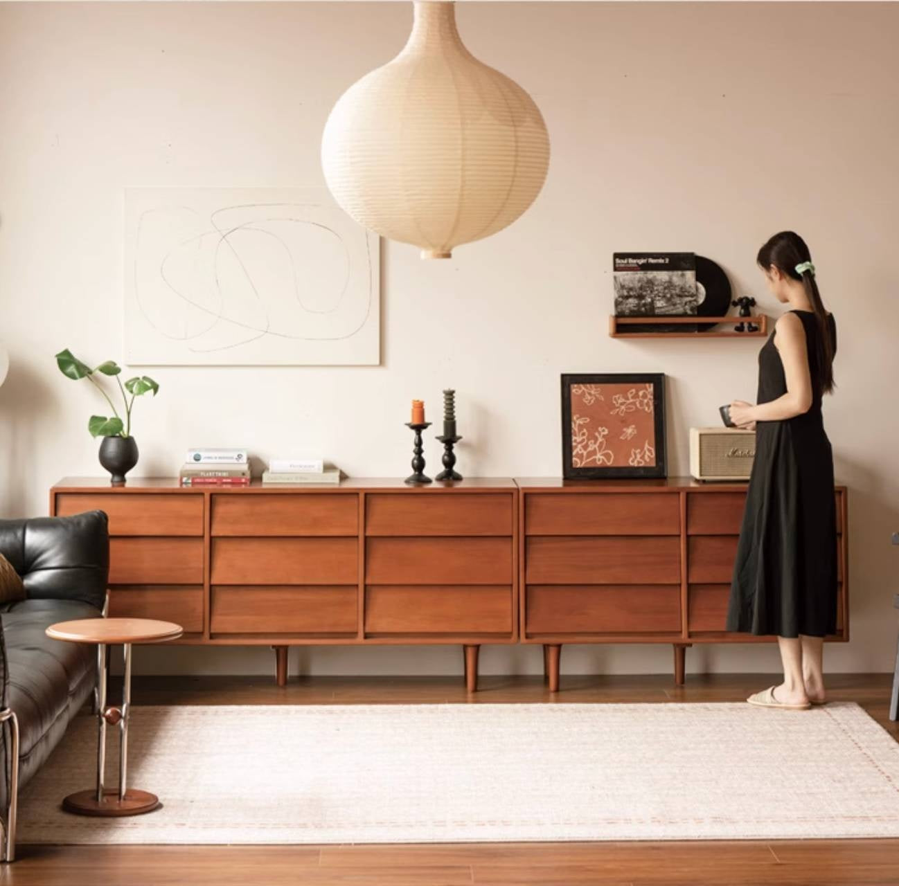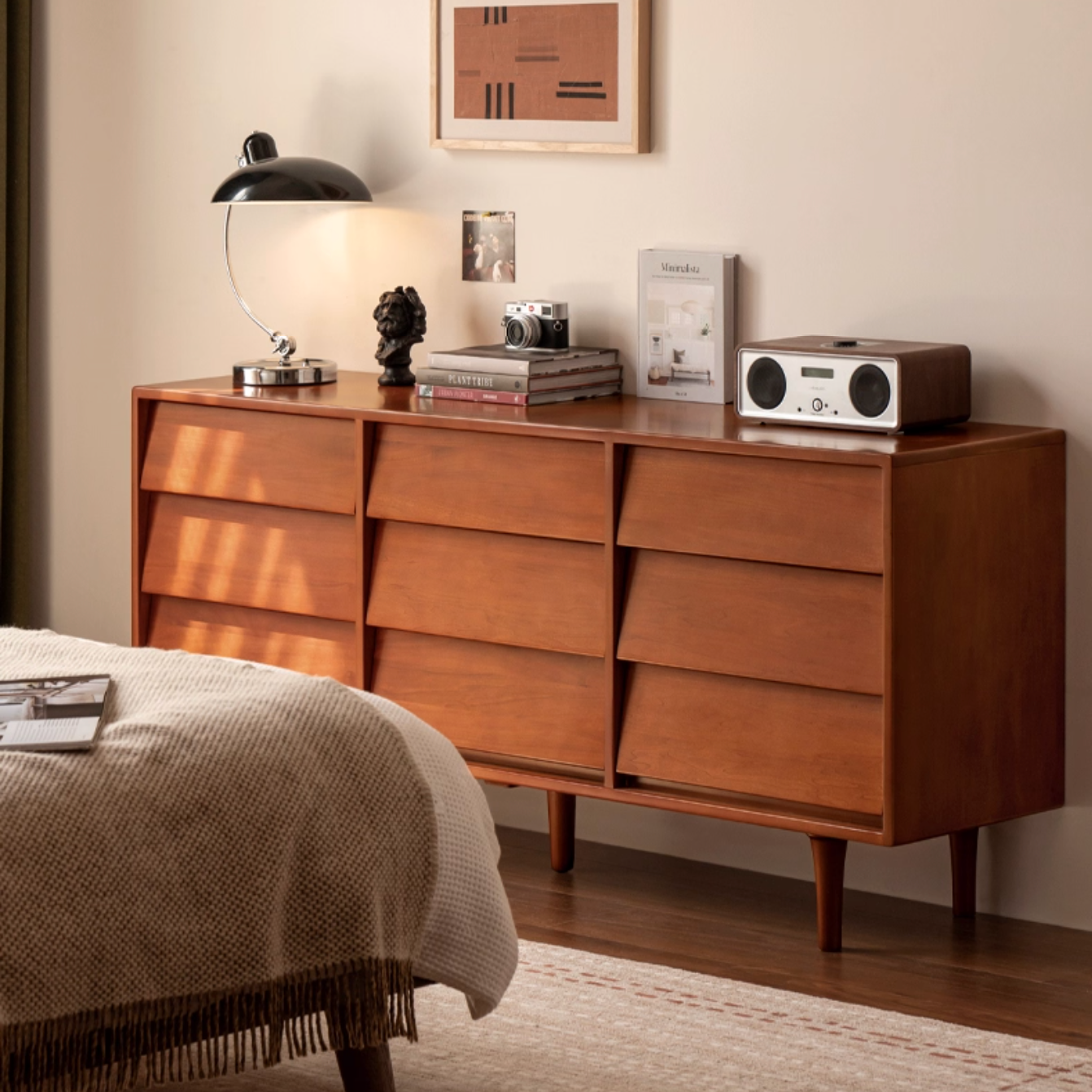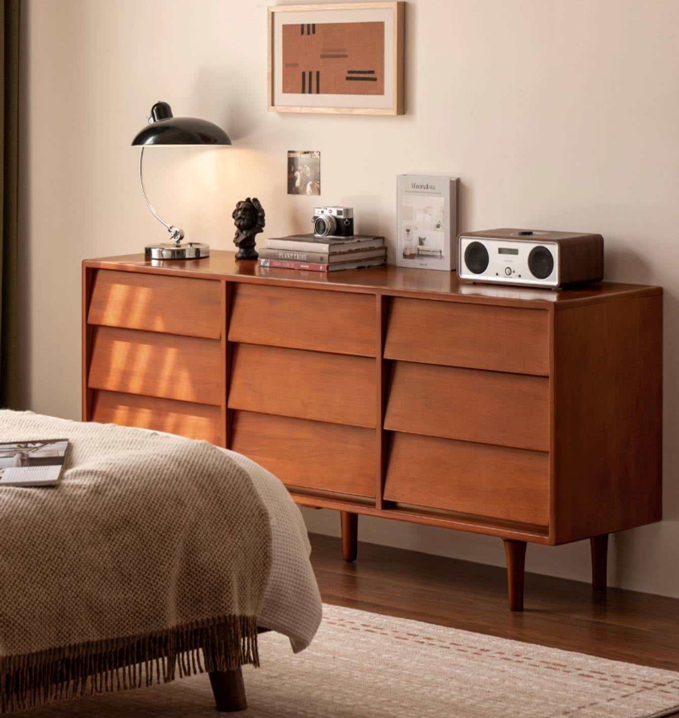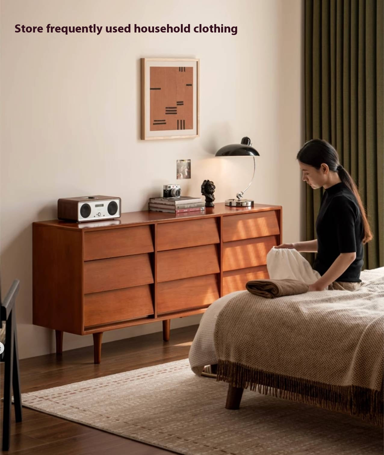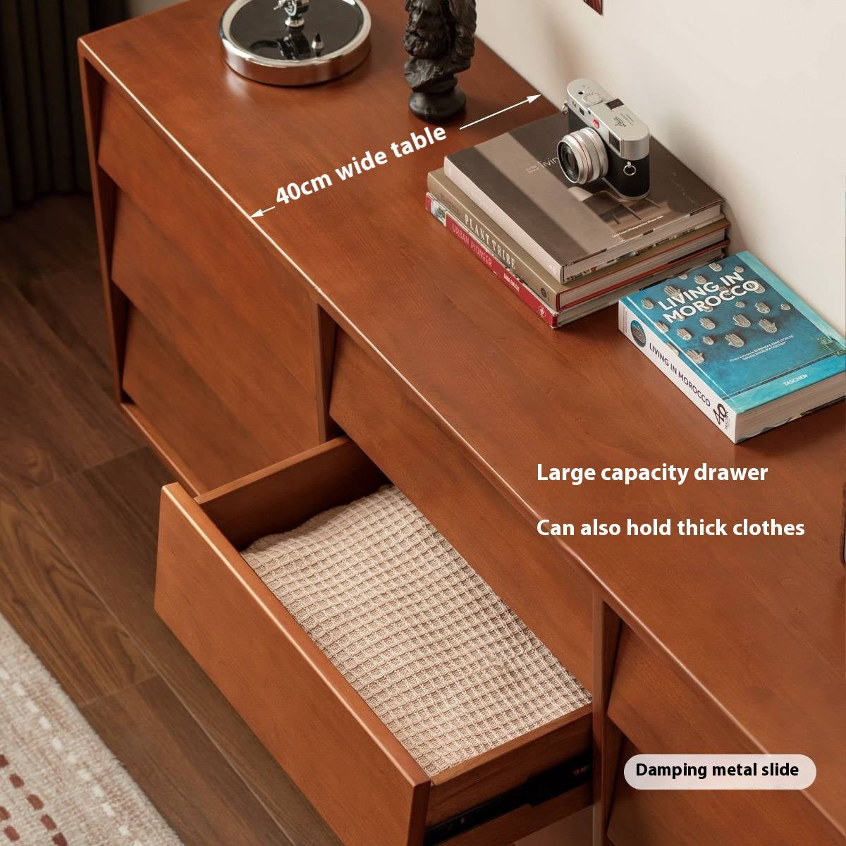 This poplar solid wood drawer features a classic design with a louvered surface that subtly captures light and shadow. It combines practical storage with timeless style, adding both function and artistic charm to your space.