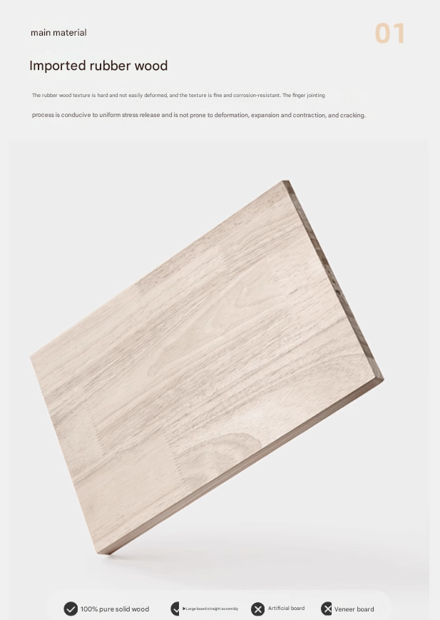 2. The main material is Thai rubber wood, which is finger-jointed, which is conducive to uniform stress release and is not prone to deformation, expansion, shrinkage, and cracking.