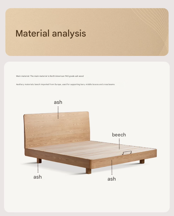 2. The main material is North American FAS grade ash wood, which has rough texture, toughness and elasticity, and strong corrosion resistance.