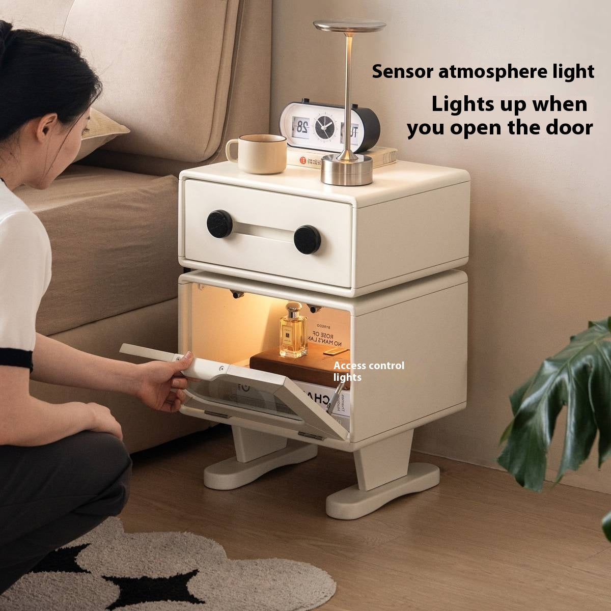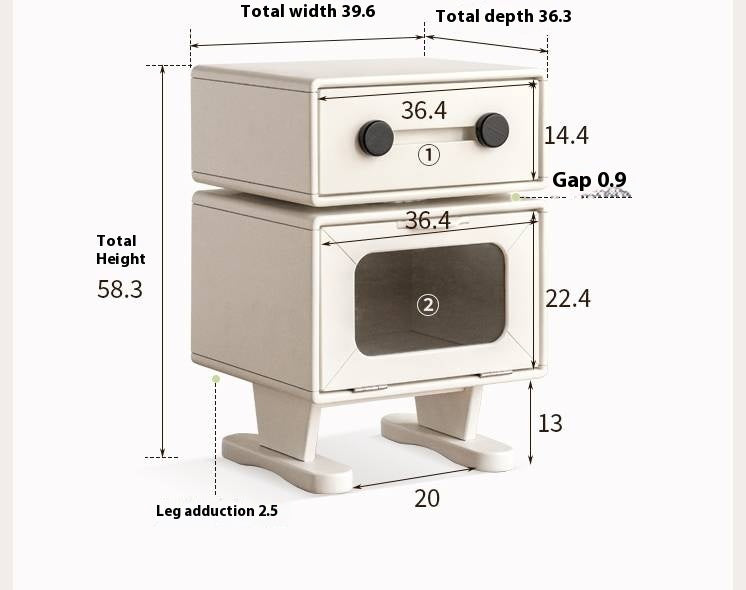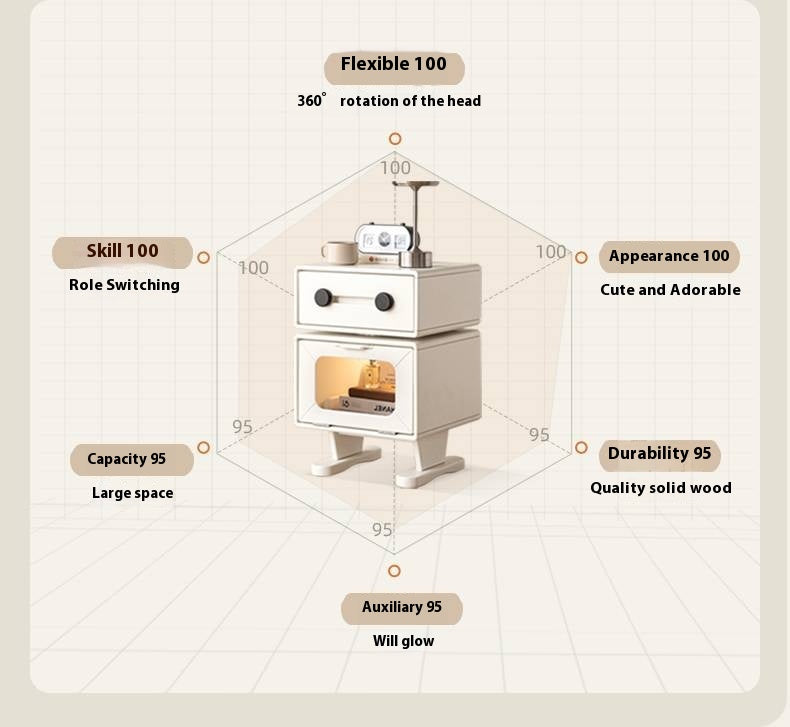 Solid Rubberwood Cream Style Nightstand