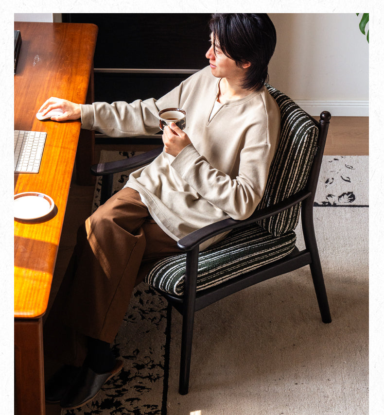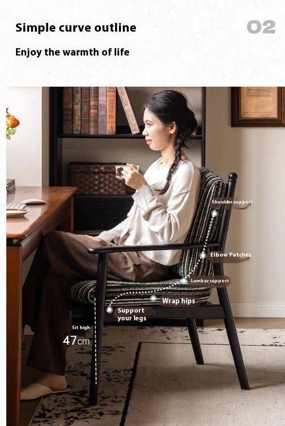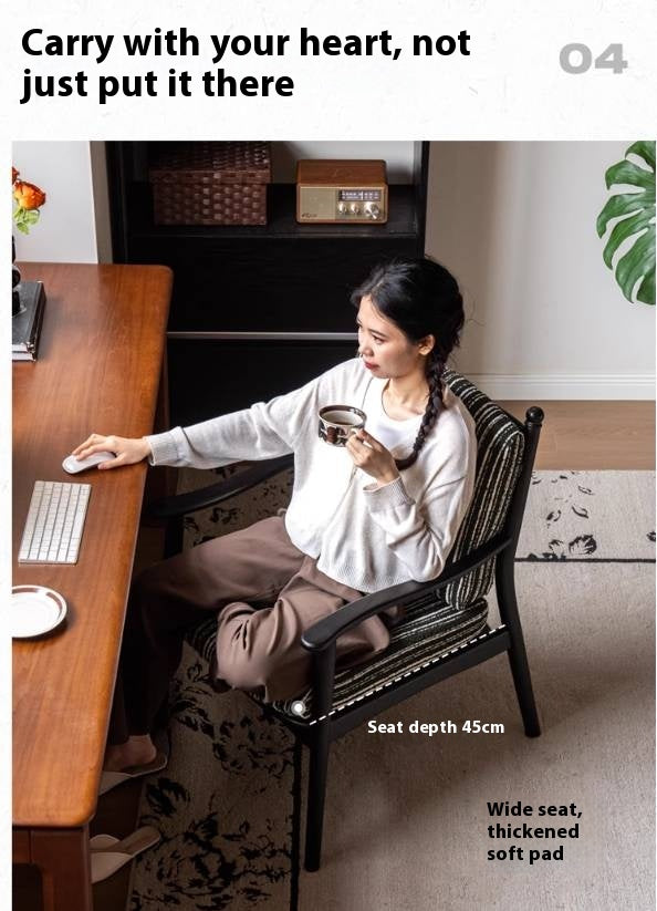 Poplar Solid Wood French Retro Black Backrest Soft Armchair
