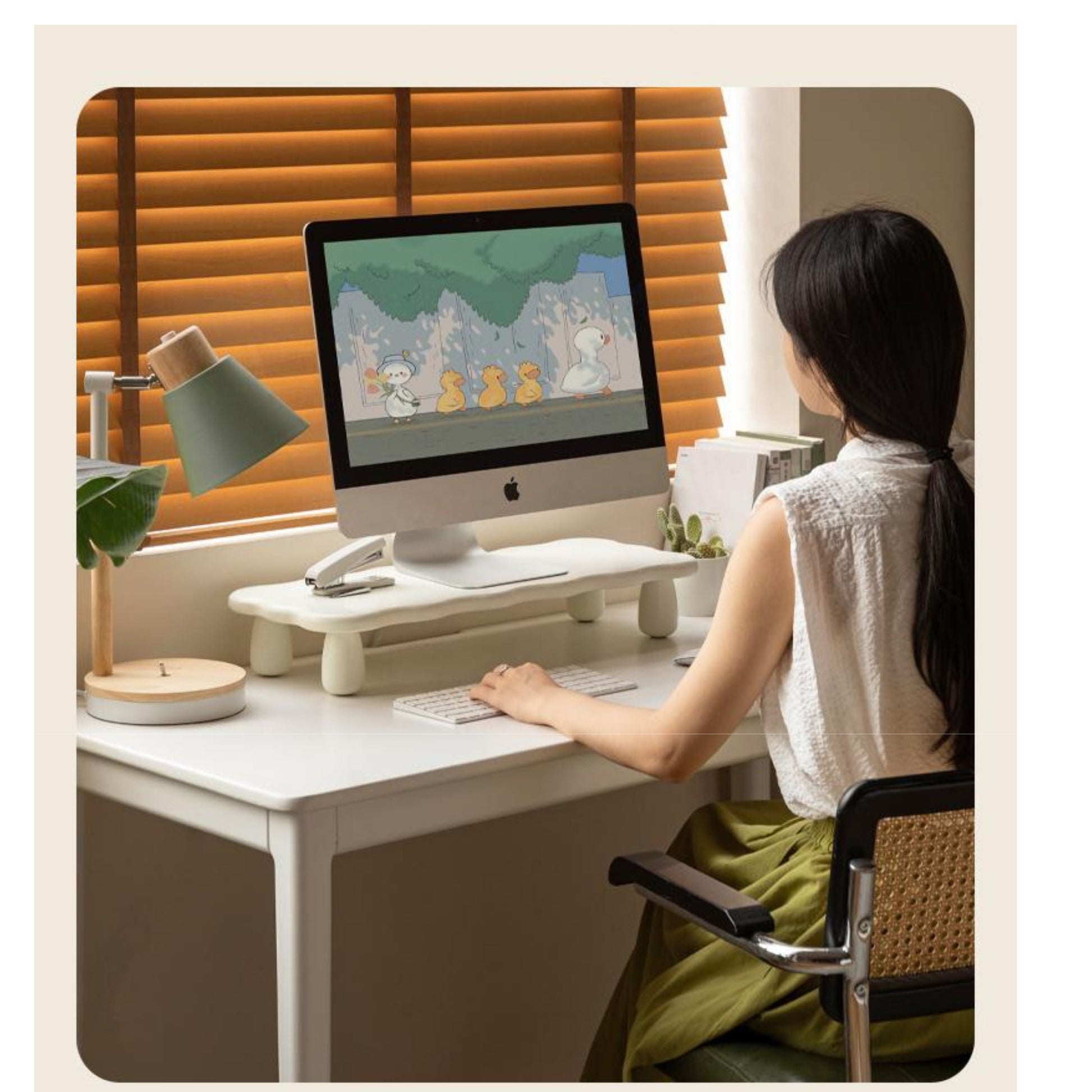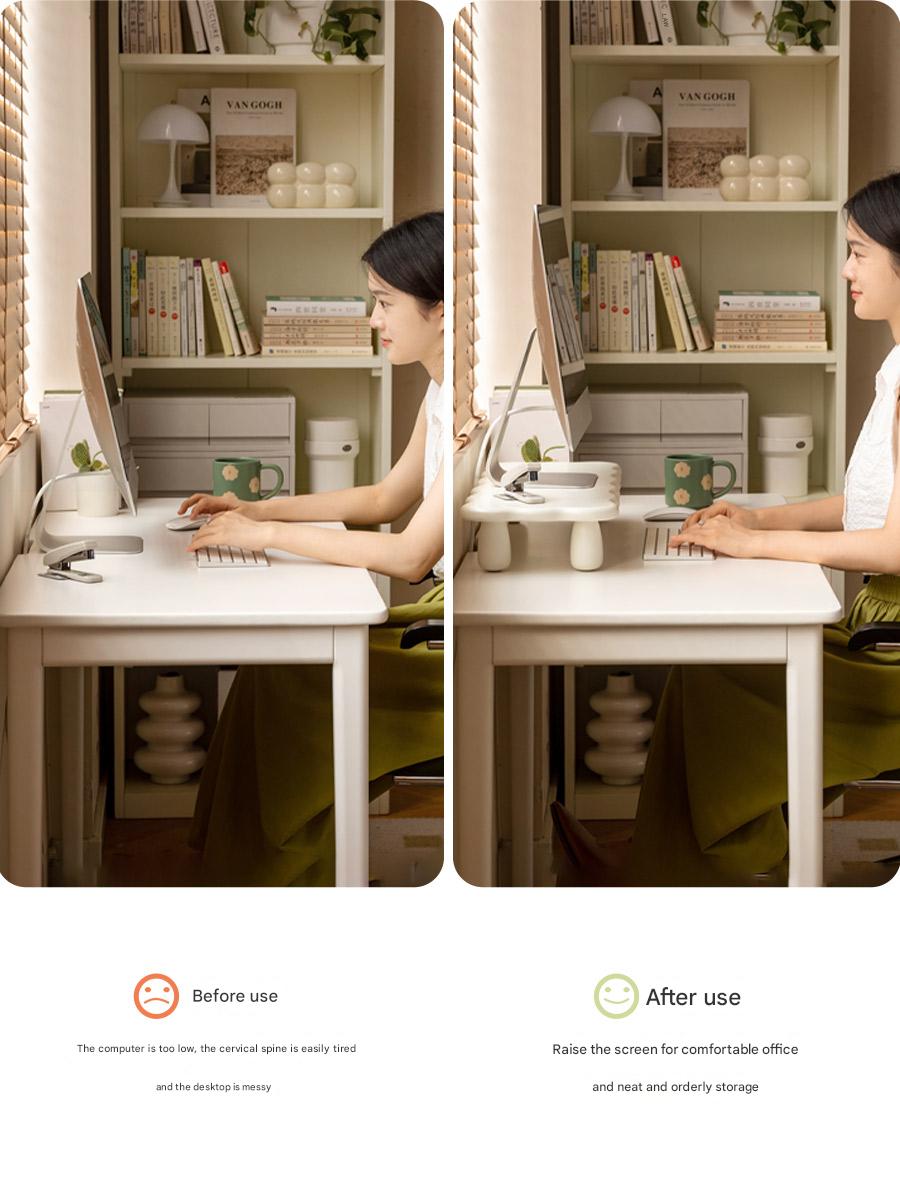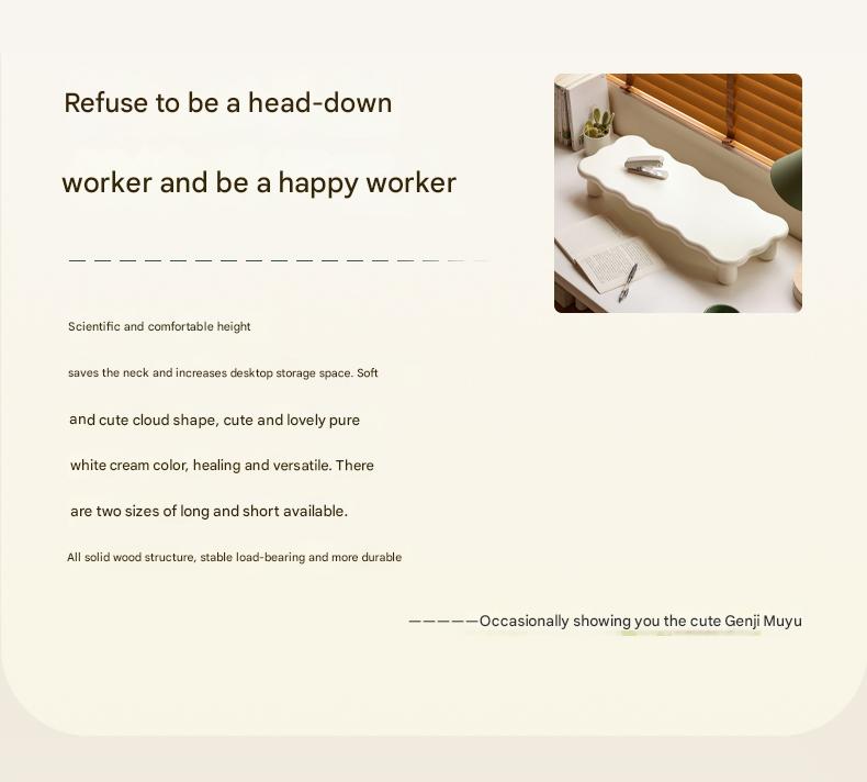 Scientific and comfortable height saves the neck and increases desktop storage space. Soft and cute cloud shape, cute and lovely pure white cream color, healing and versatile. There are two sizes of long and short available.