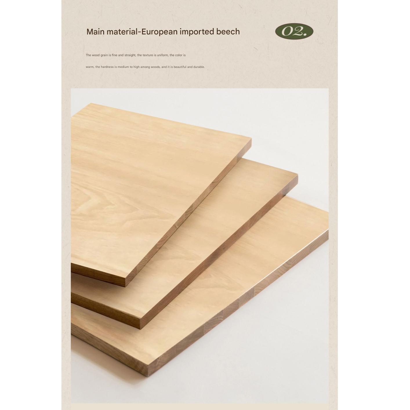 2. The main material is beech imported from Europe, with fine and straight wood grain, uniform texture, warm color and medium to high hardness among wood species. It is beautiful and durable.