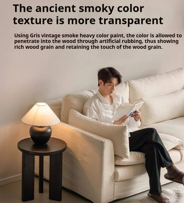 Ash Solid Wood Wabi-Sabi Style Round Side Table