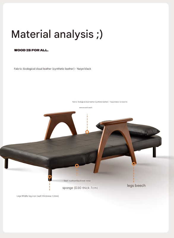 2. Sofa legs: beech + middle leg iron (wall thickness 1.2mm)