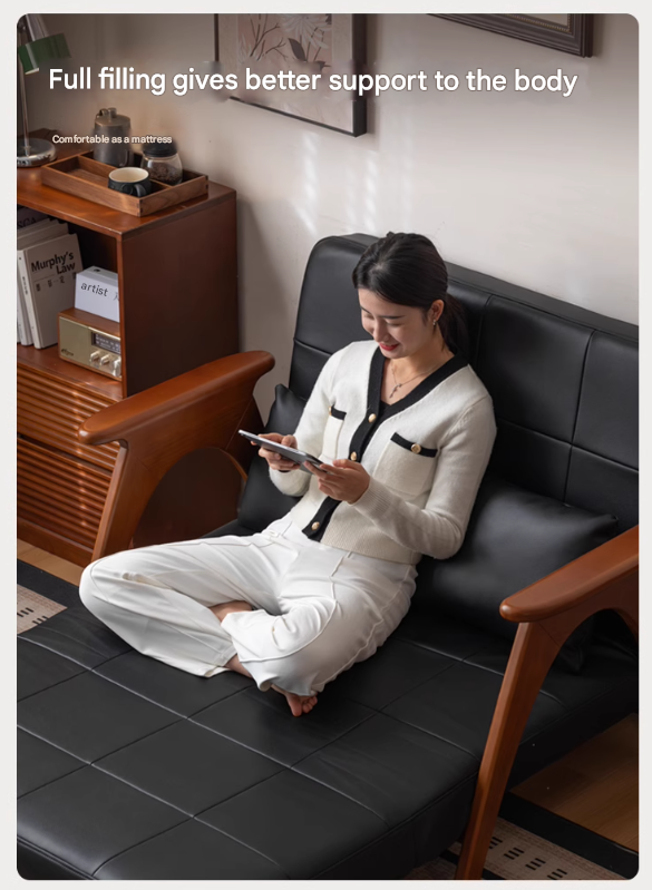 Beech, Oak Solid Wood Foldable Dual Ancient Style Sofa Bed.