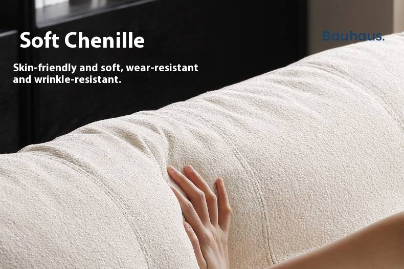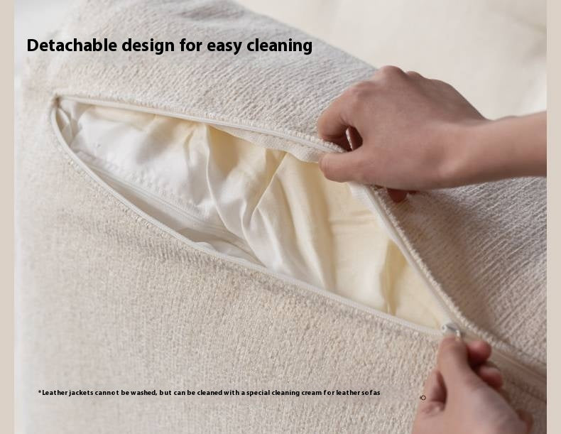 The fabric is chenille——off-white; it is removable and washable with a zipper.