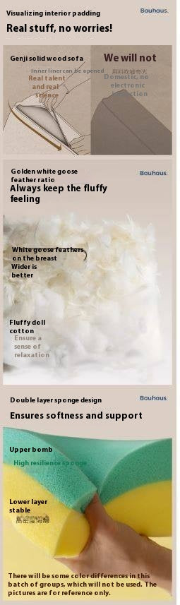 6. The inside of the armrest is: white goose feathers + doll cotton + sponge (D32/thickness 3cm + 5cm)