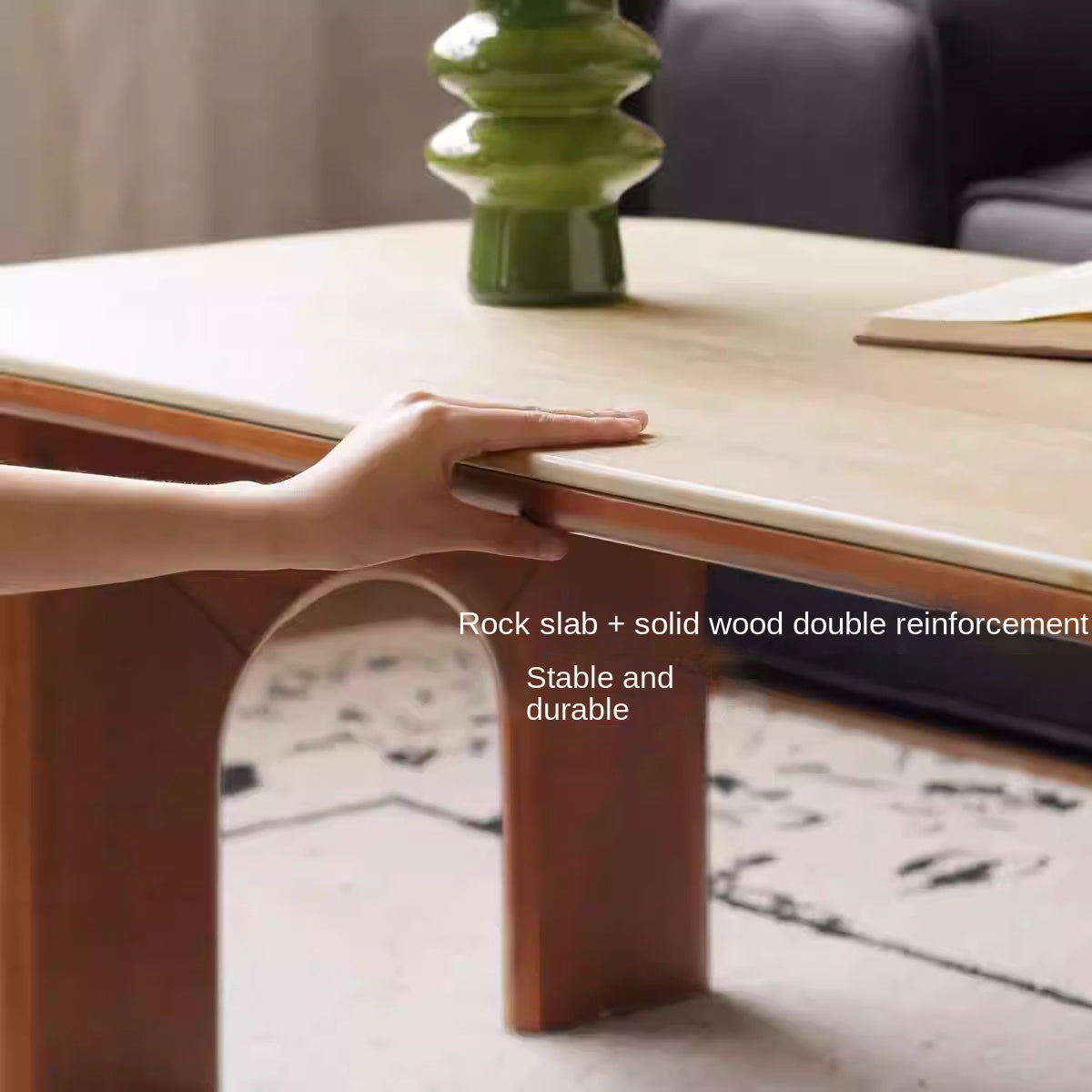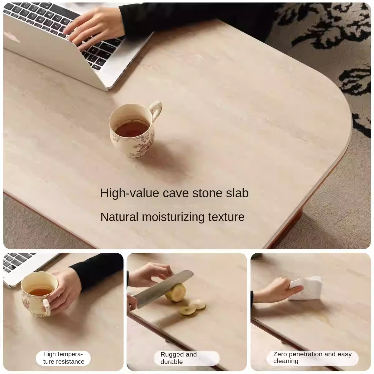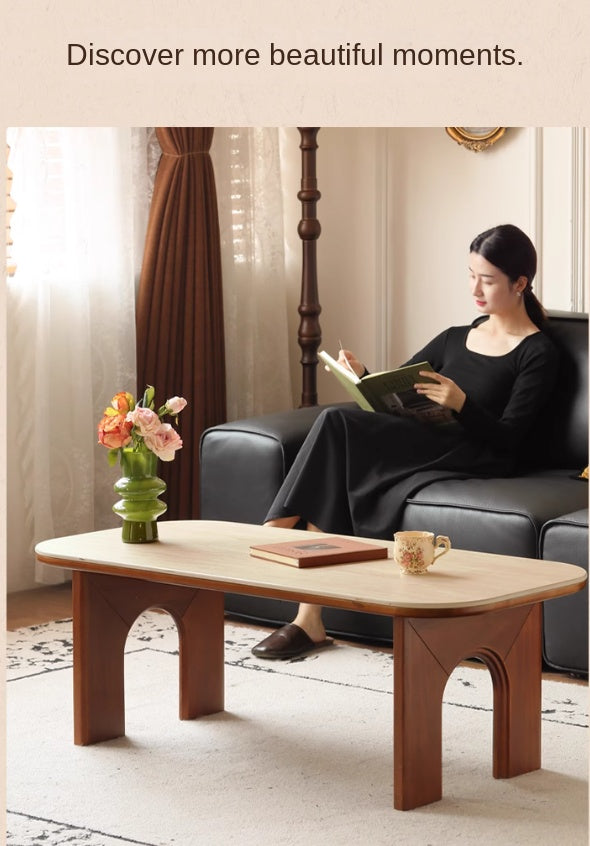 Tulip Solid Wood French Retro Rock Plate Coffee Table.