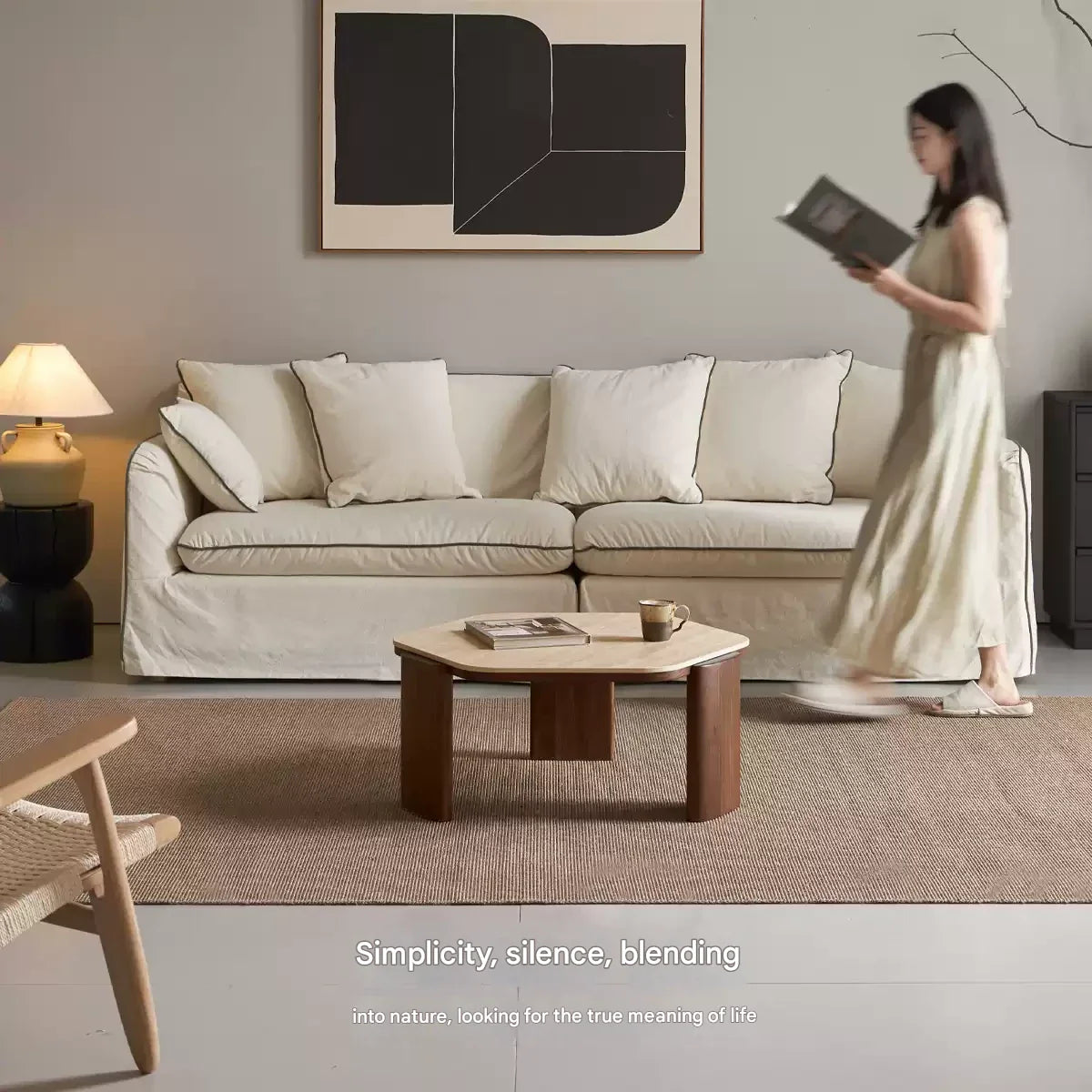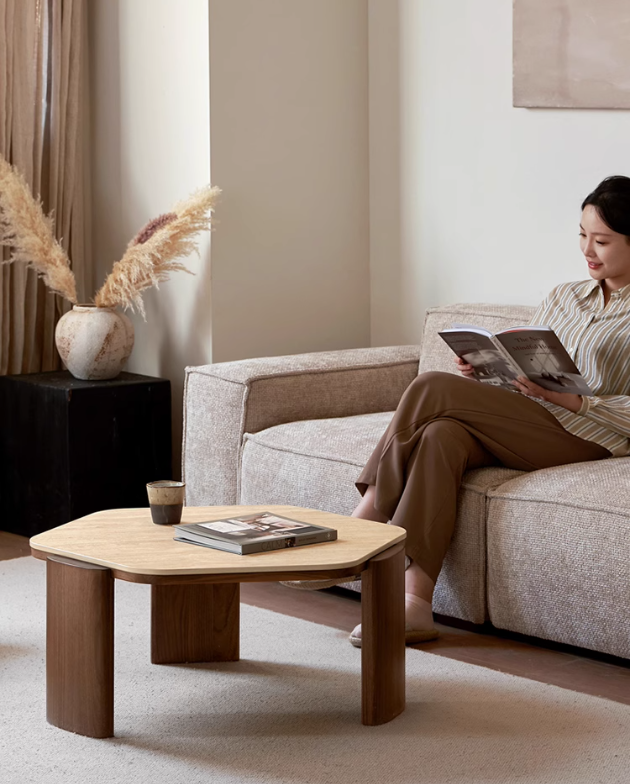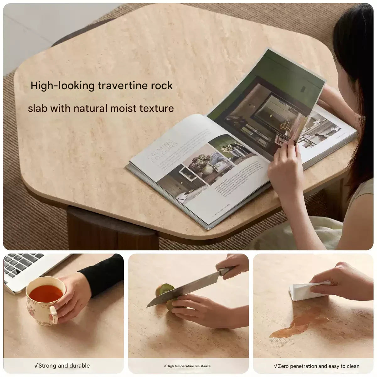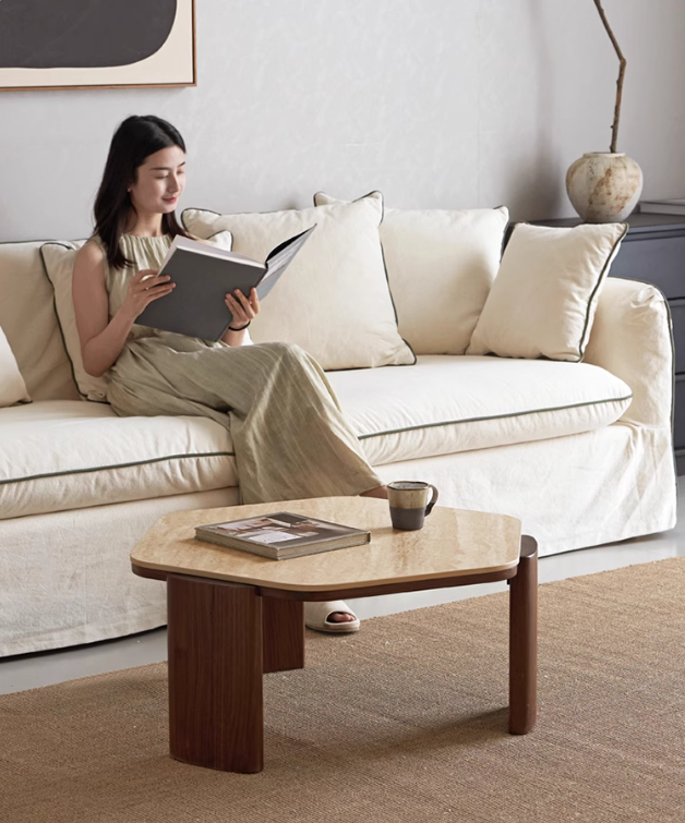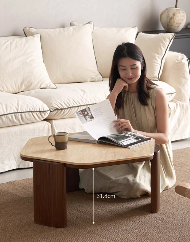 Sandalwood, Black Walnut Solid Wood Rock Plate Coffee Table