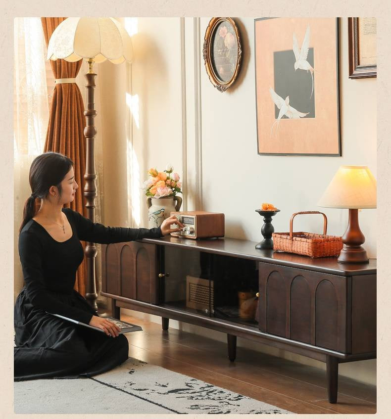 Poplar Solid Wood French Retro TV Cabinet
