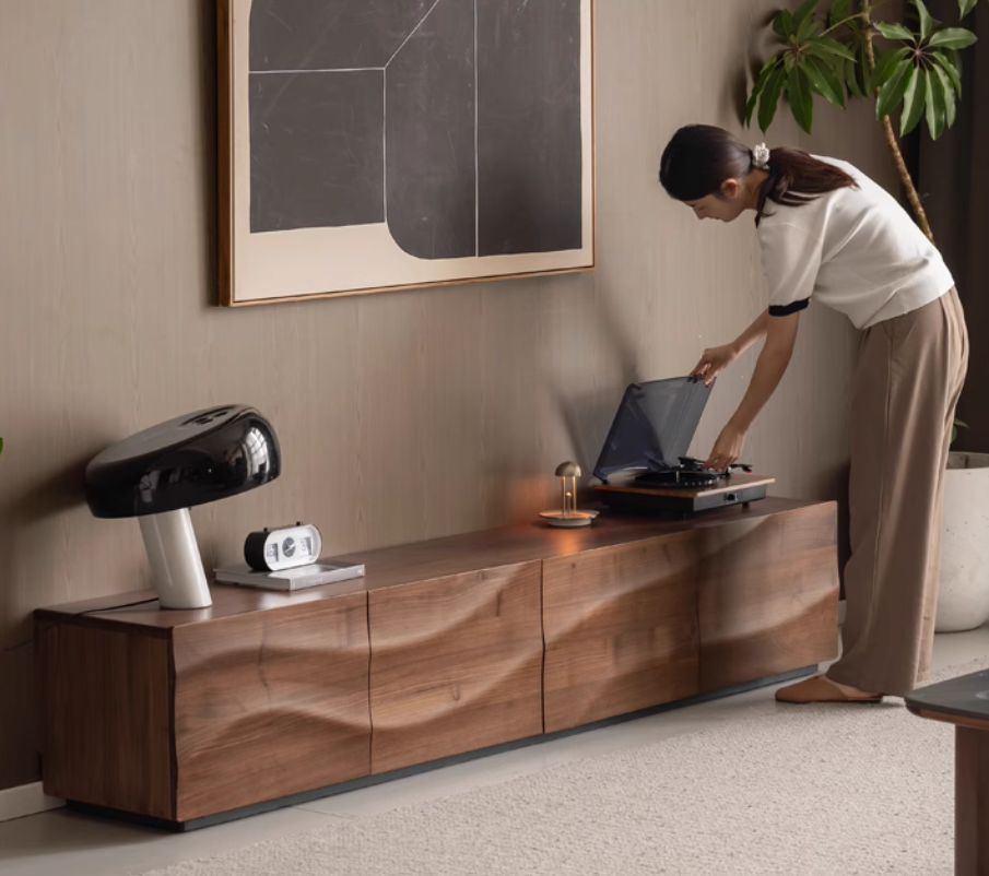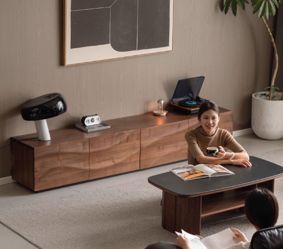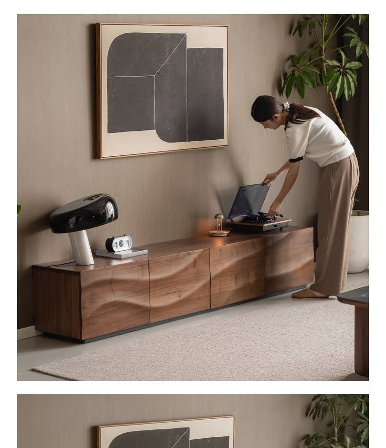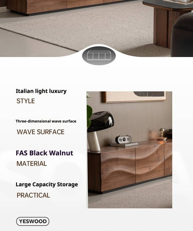 Solid Sandalwood, Black Walnut Solid Wood TV Cabinet Italian Light Luxury
