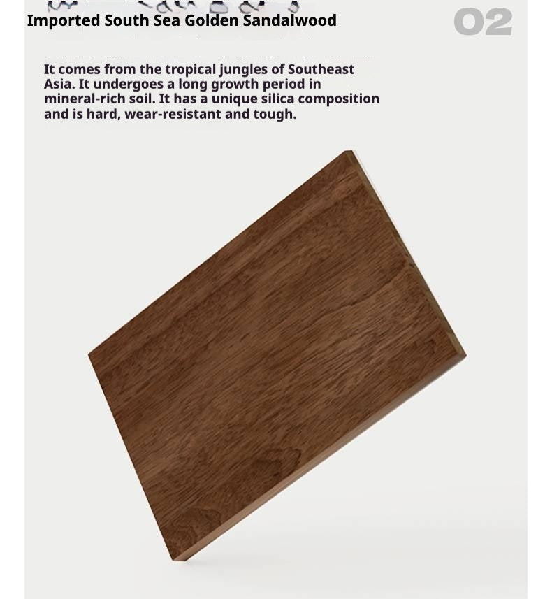 3. The main material is Nanyang golden sandalwood, scientifically known as Sven lacquer wood, which is imported from Southeast Asia. It has straight texture with few scars, is hard and wear-resistant and not easy to crack, and can adapt to dry or humid environments to a certain extent.