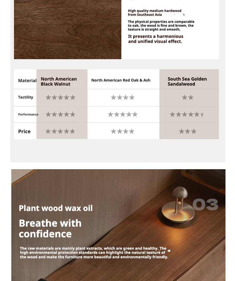 1. The wooden part is 100% pure solid wood (referring to all wooden parts except hardware and accessories), does not contain artificial boards, and is not veneered. The product may contain non-wooden accessories such as metal and glass.