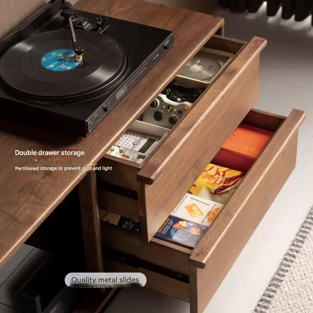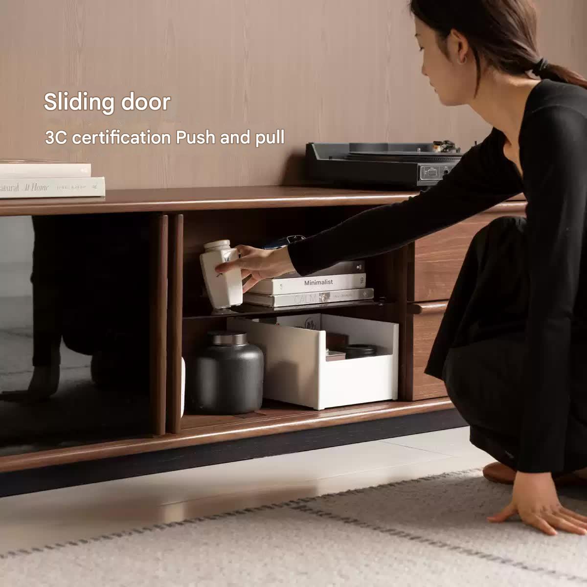 Black Walnut Solid Wood Italian Light Luxury Floor TV Cabinet.
