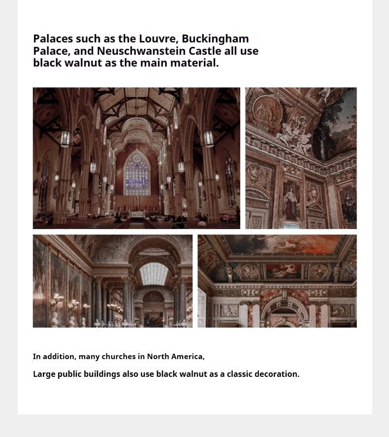 2The main material is black walnut imported from North America, with rich and varied patterns, few knots, and no mildew. It is a luxury item among woods.