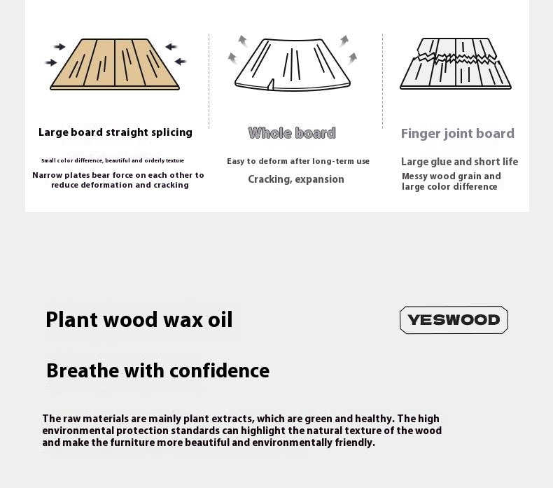 First, use environmentally friendly odorless paint as the base to make the furniture more waterproof, oil-proof and stable, and then apply plant wood wax oil for protection. It is natural and environmentally friendly, making the furniture warm and shiny, and the feeling of use is better, and the family can use it with more peace of mind!